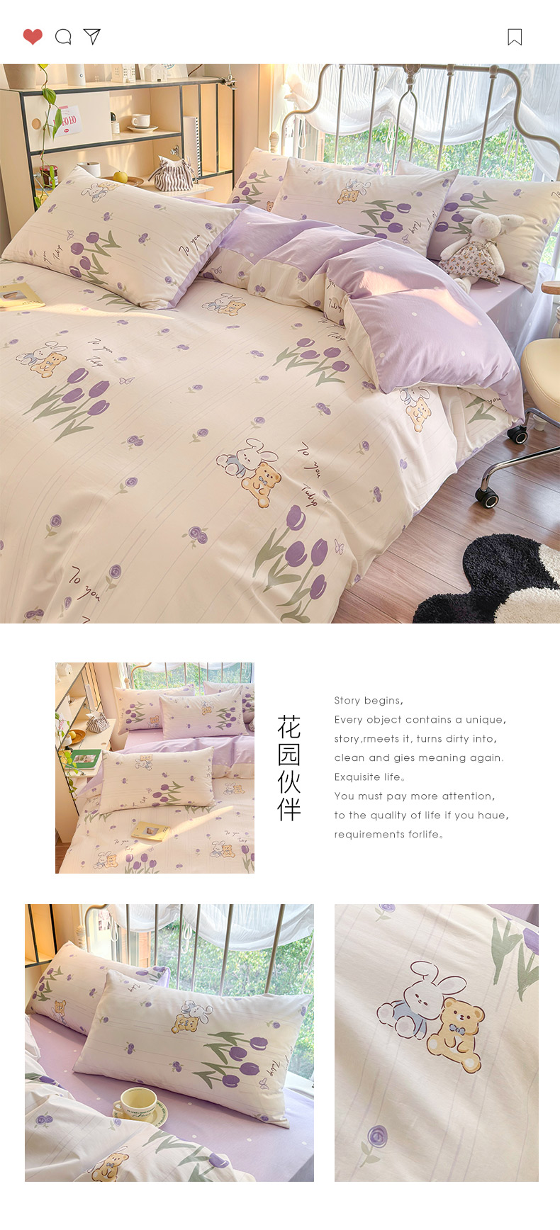(总)瑞莱 2025夏季新款全棉纯棉有氧双层纱四件套,格子狗(粉),春日女孩,格子狗(蓝),功夫熊猫,何枝小兔,花园小狗,萝莉兔,萌萌狮,梦幻花园兔,少女象(绿),熊孩子,原宿小兔