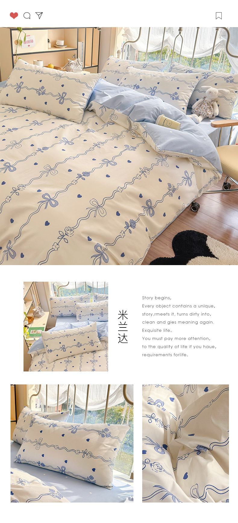 (总)瑞莱 2025新款水洗棉拼接工艺花边款四件套-波点蝴蝶结,波点蝴蝶结-蓝