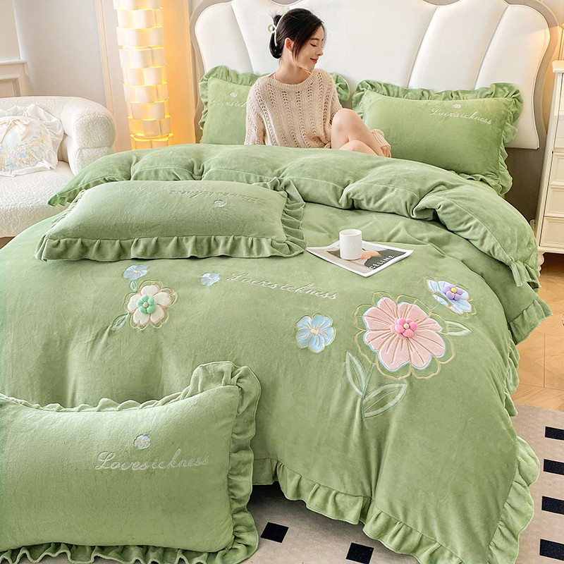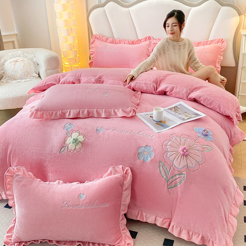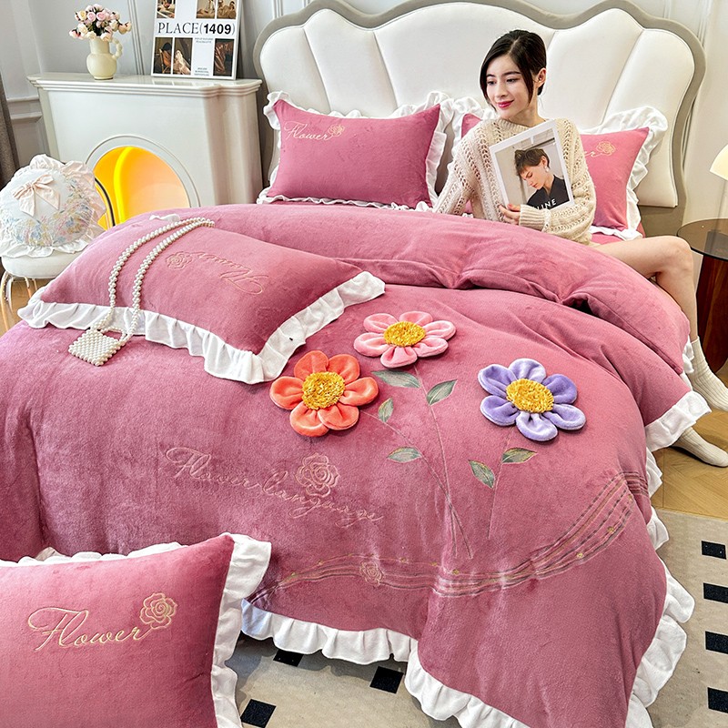 漫布云9斤230g全消光婴儿绒被套兔毛绒牛奶绒贴布绣刺绣花四件套小清新