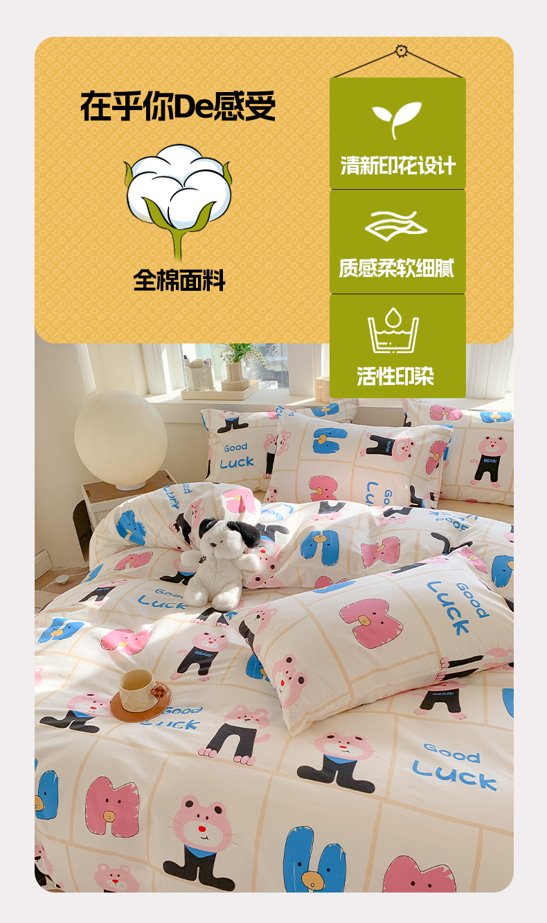 (总)澳萝拉 2023新款全棉印花四件套会员减5元,嗨迪诺,可爱多多,可可朵朵,兔兔莓莓,熊熊的面包,安绘里,豹纹棕熊,草莓花园,粉心小熊,简单生活,快乐星球,蓝心小熊,时尚熊,贪吃鲨,甜心花园,甜心小兔,童话镇,元气小熊,薄荷奶绿,黑糖乳酪,花语仙踪,秘密花园,暖时光,童趣园,野餐森林,元气花花,元气橘,云上花园,呆萌狗,古灵精怪,乖乖兔,好事发生,花朵兔兔,花园漫步,焦糖布丁,爵士汪,奇幻星球,糖果兔兔,甜甜圈,小确幸,小甜心,心动甜心,星际兔,游乐园,云朵兔兔,芝芝汪