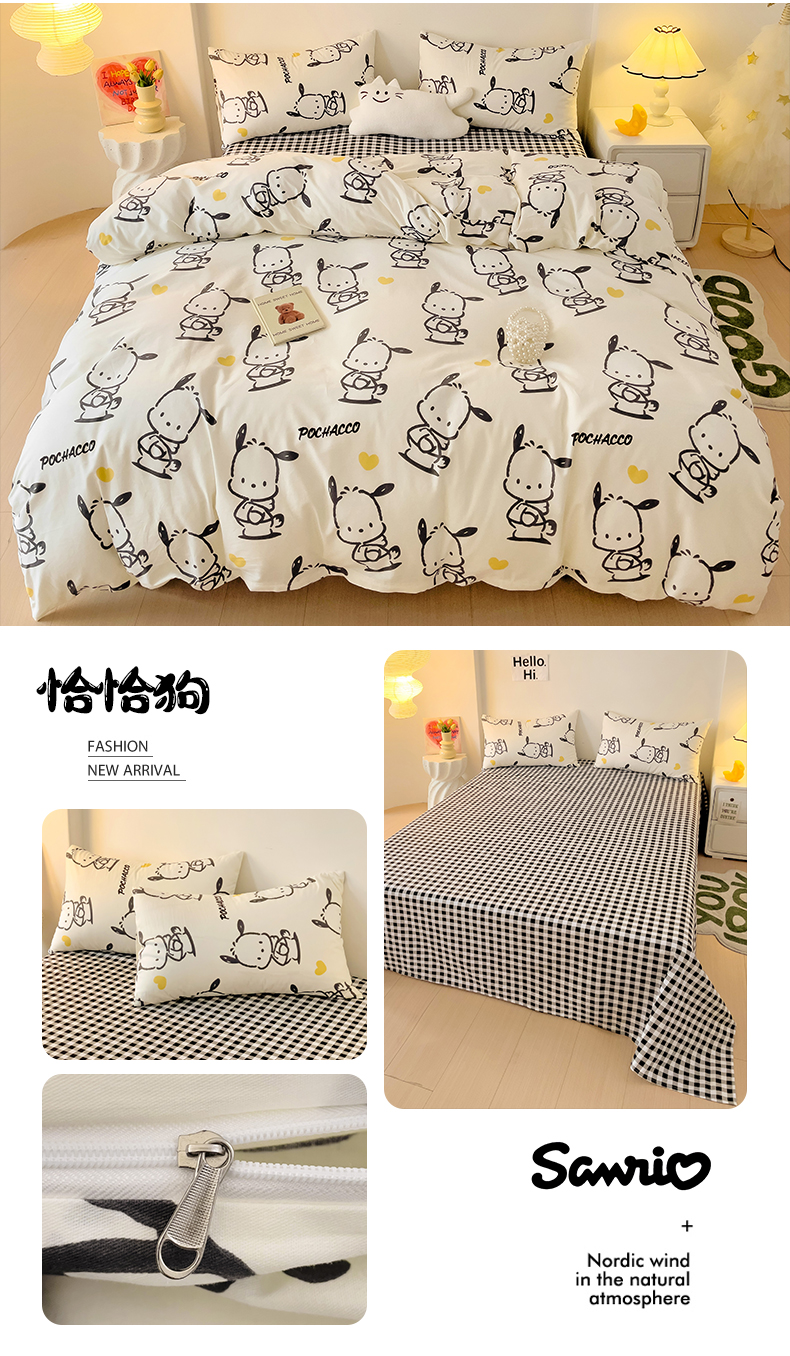 商品名称:珺柔家纺 2024新款13070全棉三丽鸥系列四件套 恰恰狗