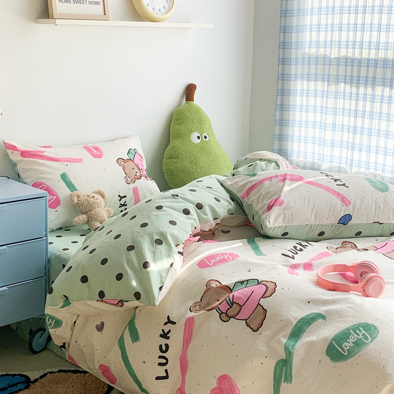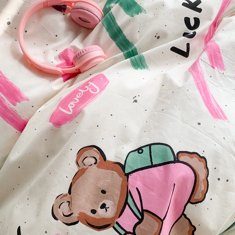 (总)昔可 2023新款学生季卡通普通款四件套,彩色气球熊,彩条恐龙,憨憨熊,花蜜小兔,蘑菇兔,圈圈草莓,蔬菜小兔,郁金香小萌狗