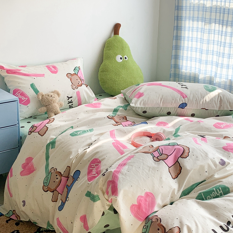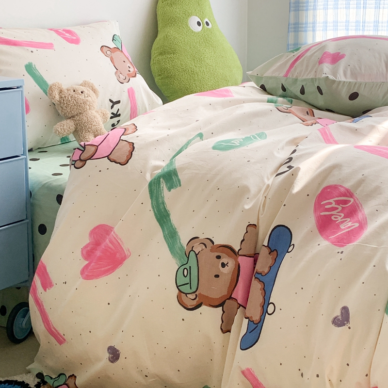 昔可家纺 2023新款12月卡通全棉四件套 滑板熊