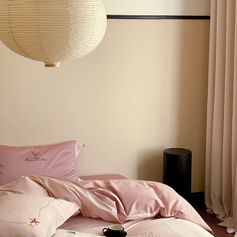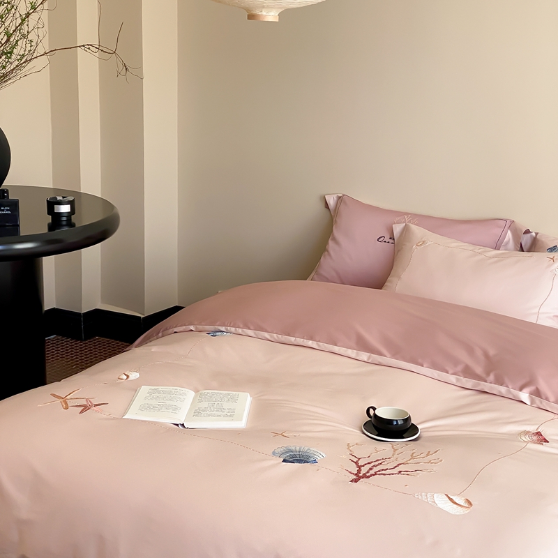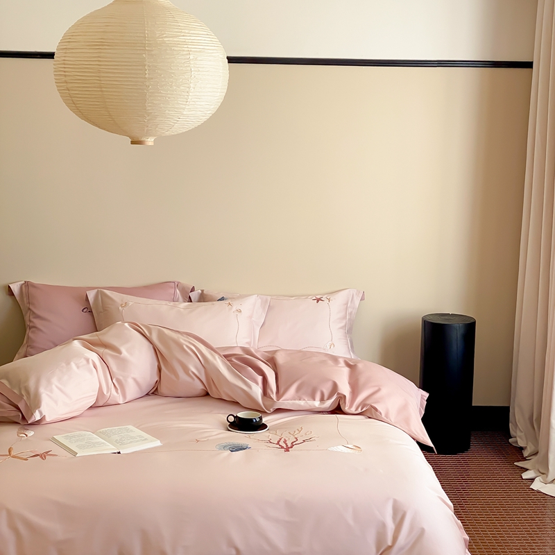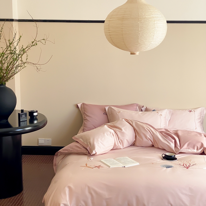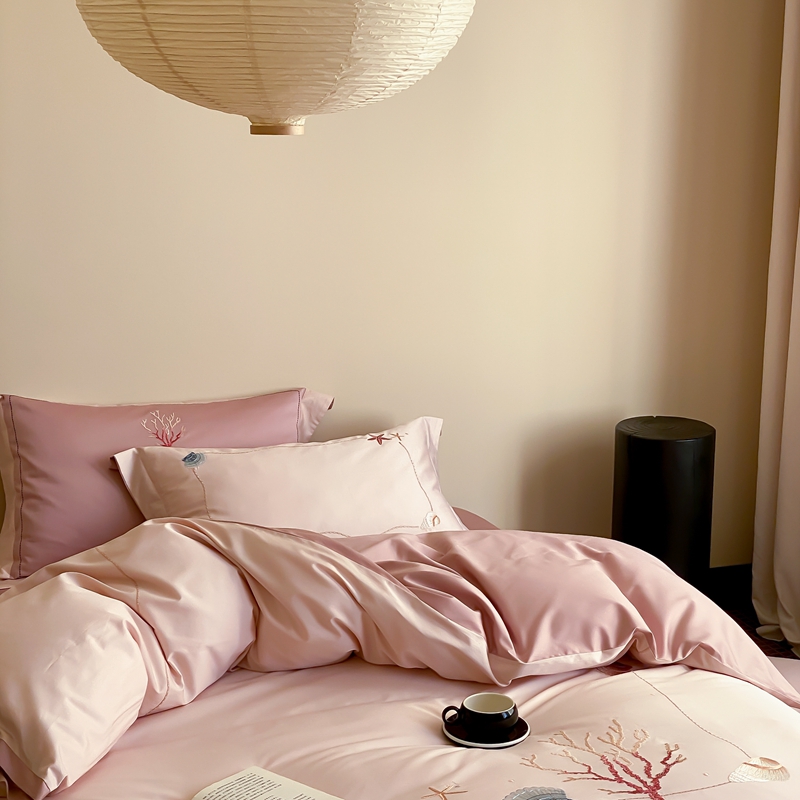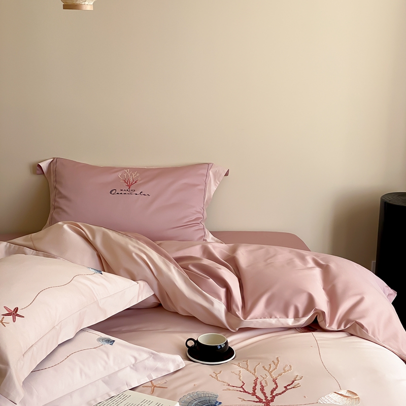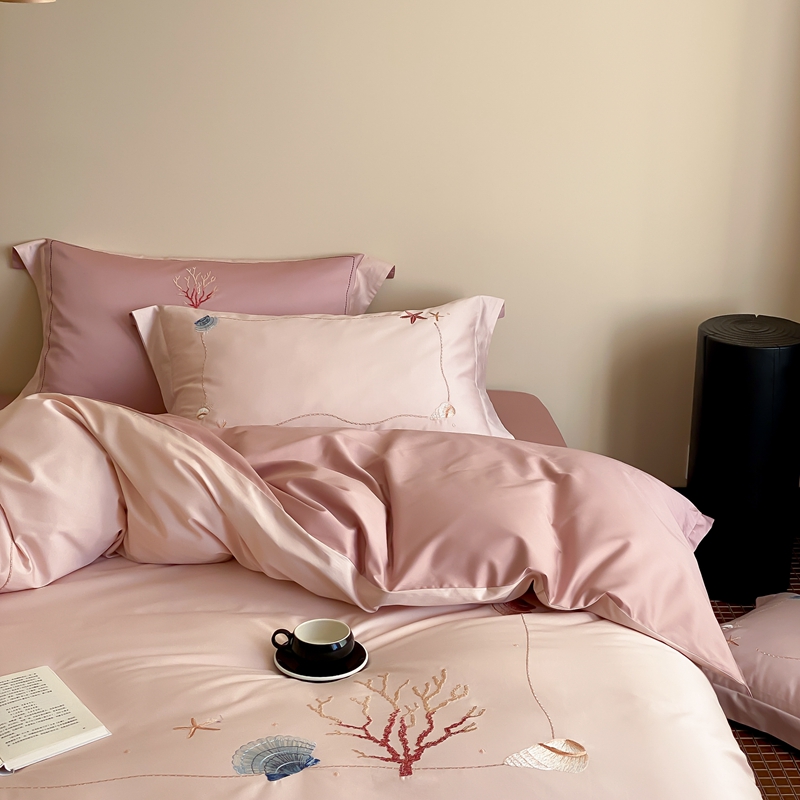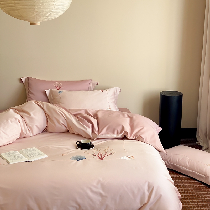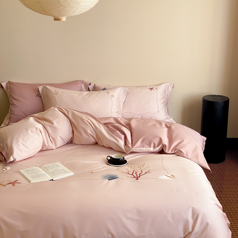 (总)赫帛 2026新款50s数码全棉轻磨毛四件套-暖叶,暖叶-粉色