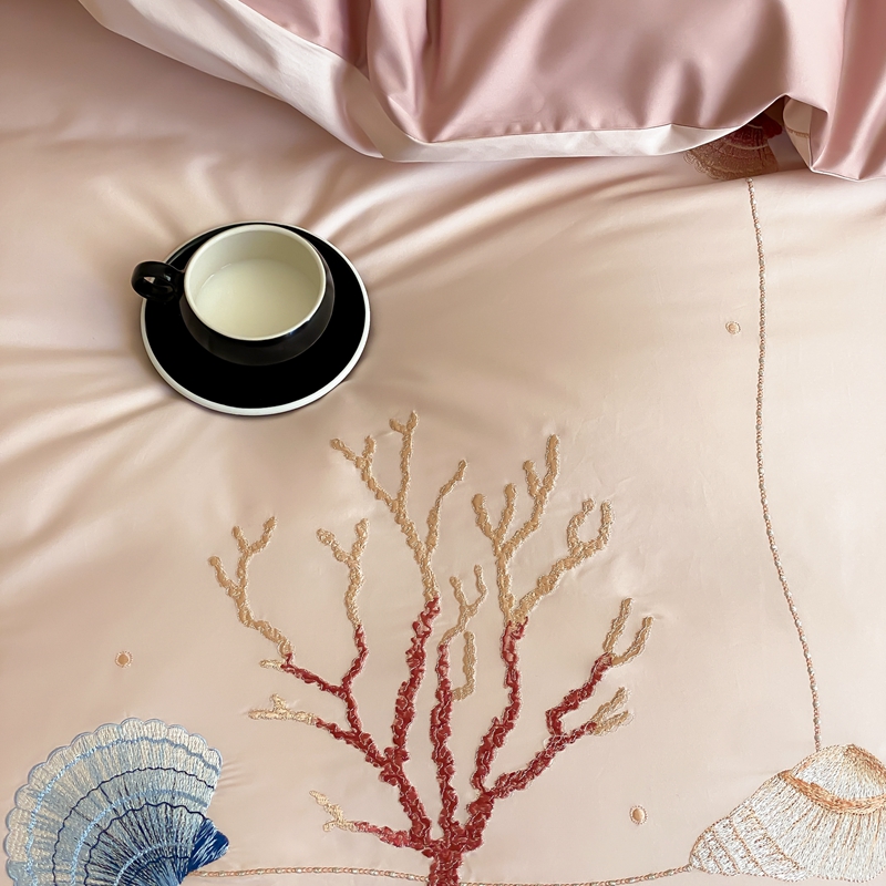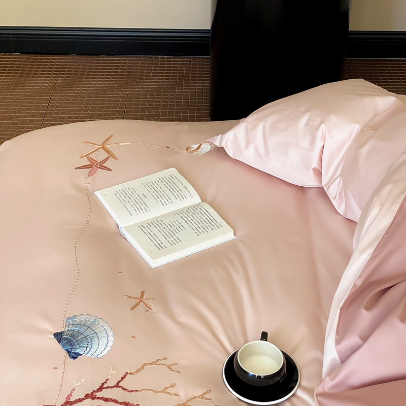 (总)赫帛 2024新款50s缎纹数码印花长绒棉刺绣四件套-海洋之星