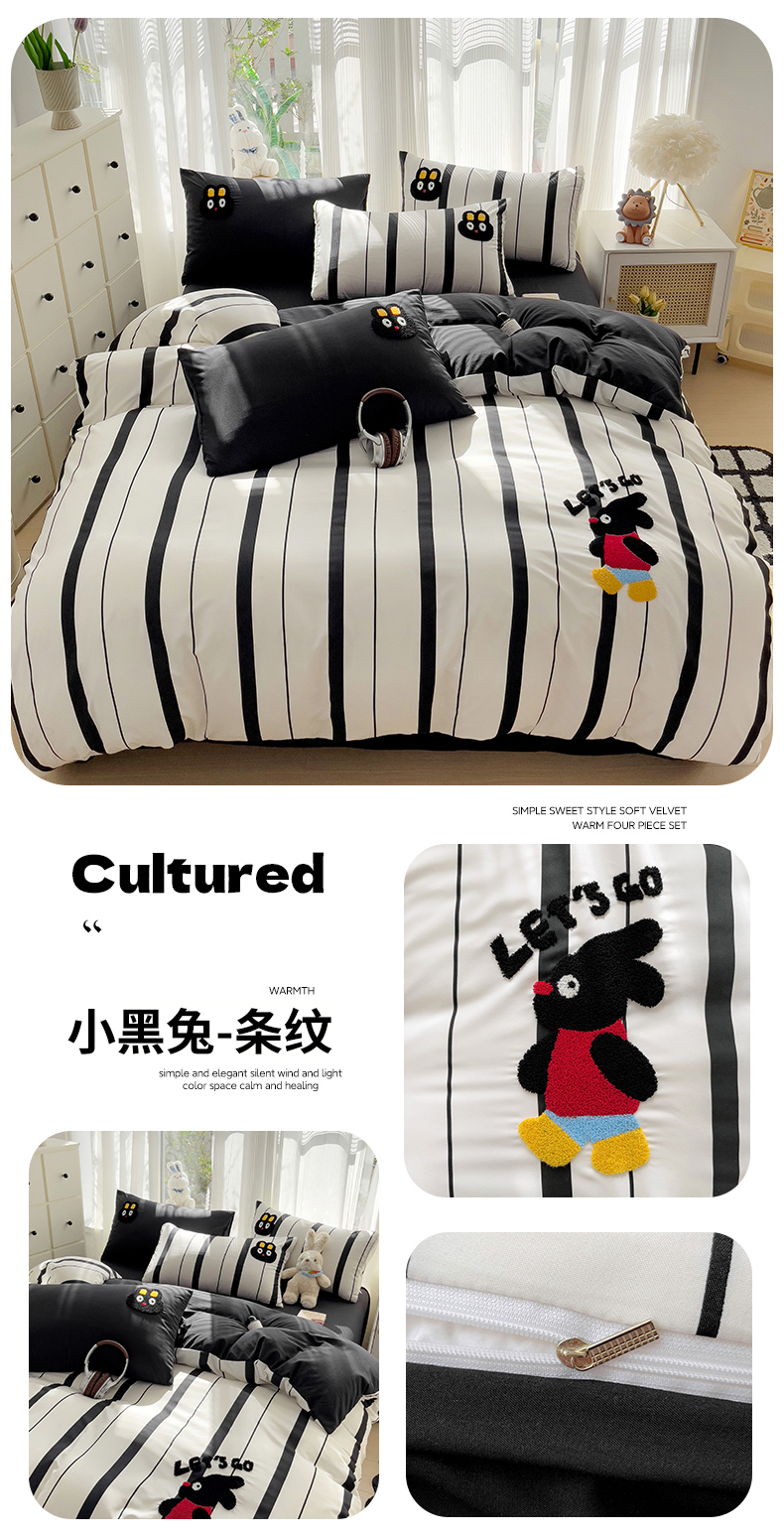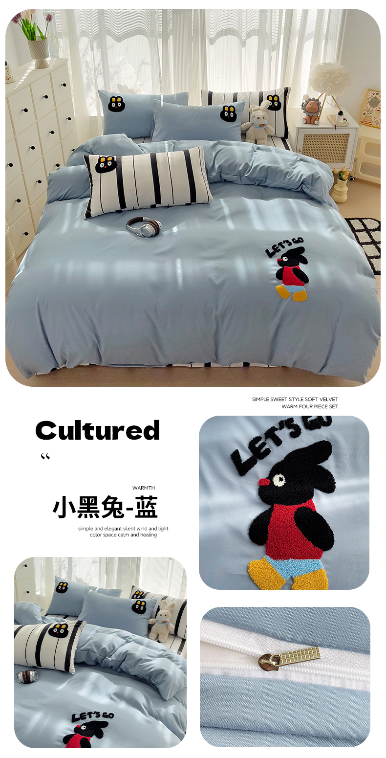 (总)尤米 2024新款可爱萝卜兔水洗棉毛巾绣四件套 学生床,萝卜兔-嫩黄,萝卜兔-浅粉,萝卜兔-浅蓝,萝卜兔-浅绿