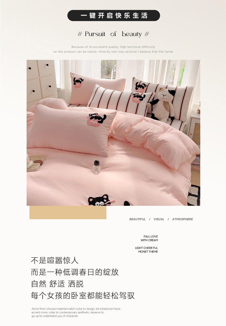 (总)尤米 2023新款莫奈系列水洗棉绣花麻绳款四件套,莫奈-魅影黑,莫奈-米杏色,莫奈-抹茶绿,莫奈-松石蓝,莫奈-月光白,莫奈-月雾灰