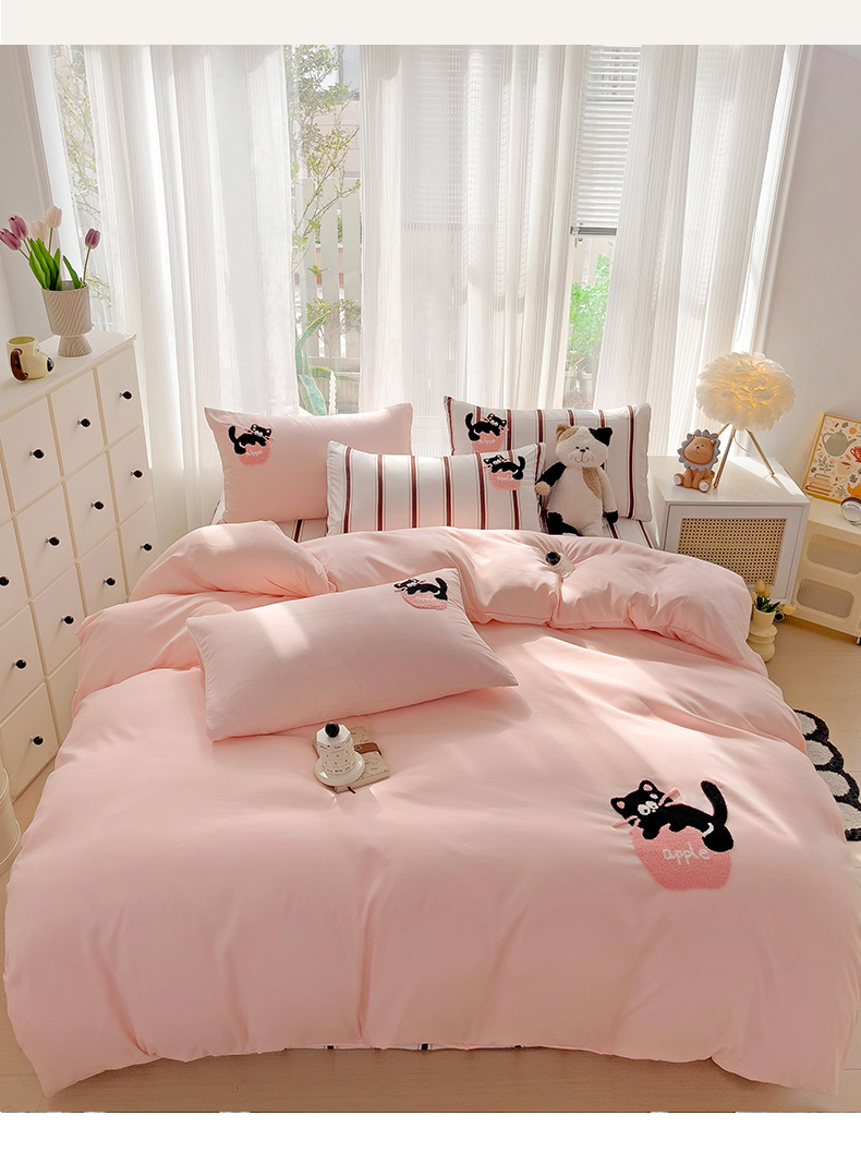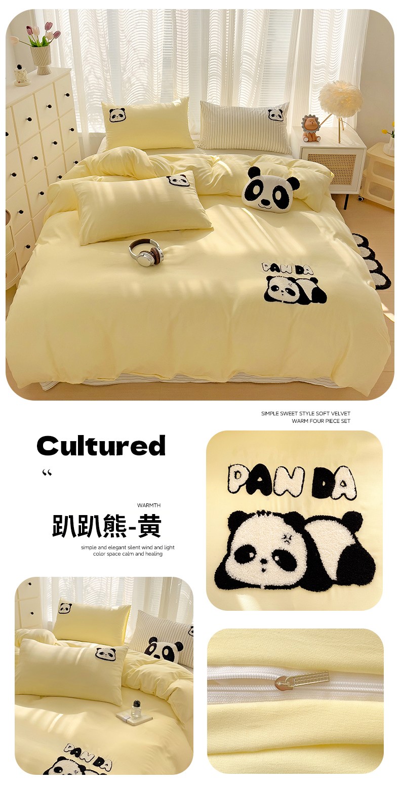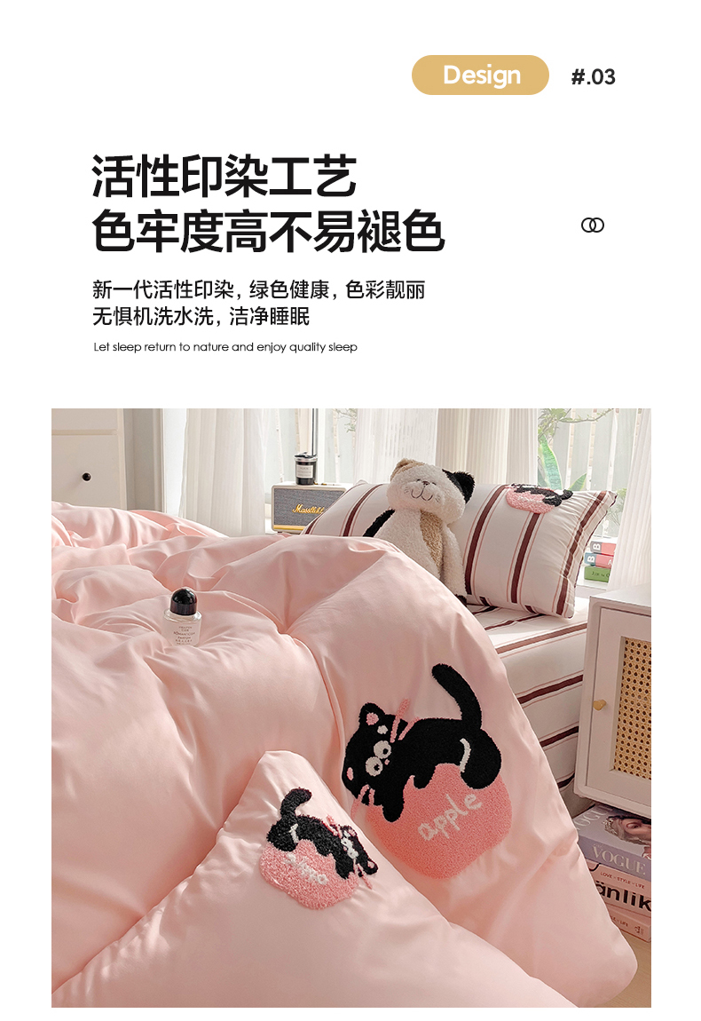 (总) 尤米 2024新款奶油风水洗棉四件套,可爱狗-白,可爱狗-粉,小熊猫-黄,小熊猫-蓝,郁金香-白,郁金香-绿