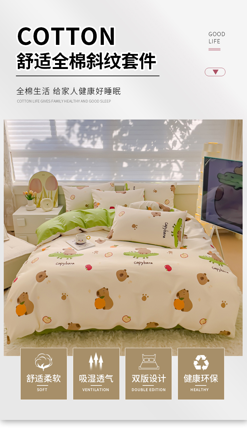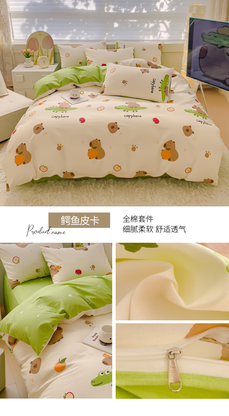 当前位置: 91家纺网 > 商品网购 > 床品套件 > 四件套 > 全棉普通四件套 > 金丝鸟 2024新款全棉四件套可爱卡通系列四件套 鳄鱼皮卡