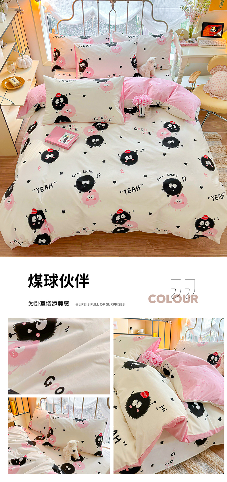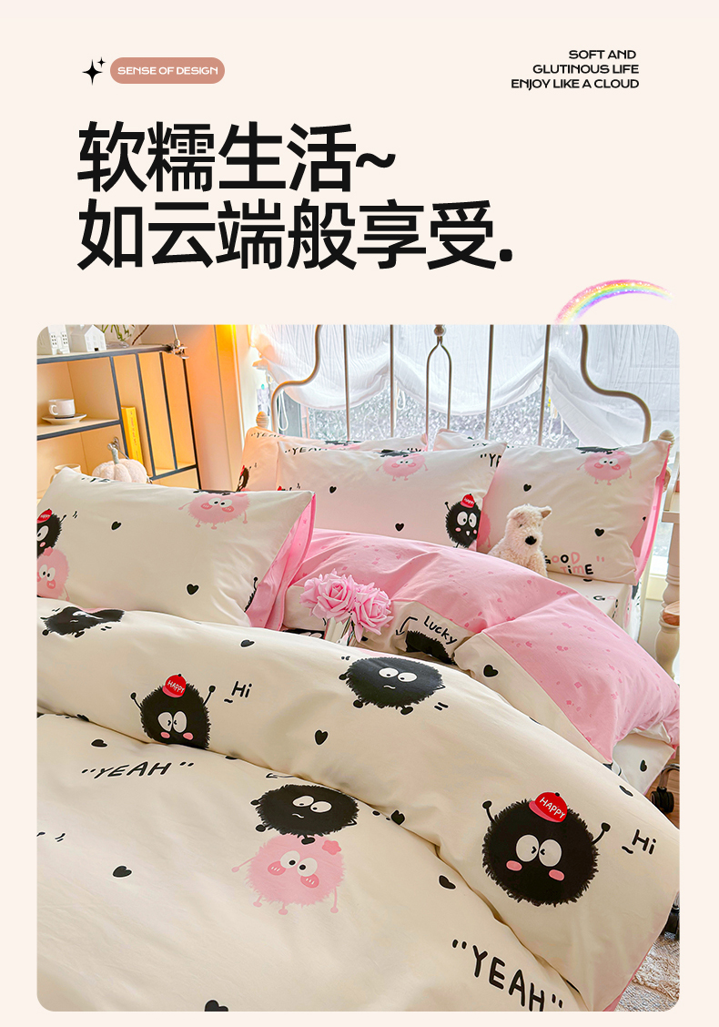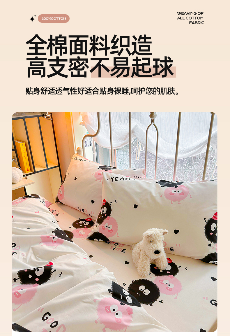 当前位置: 91家纺网 > 商品网购 > 床品套件 > 四件套 > 全棉普通四件套 > 名兮家居 2024新款卡通风系列全棉四件套 煤球伙伴