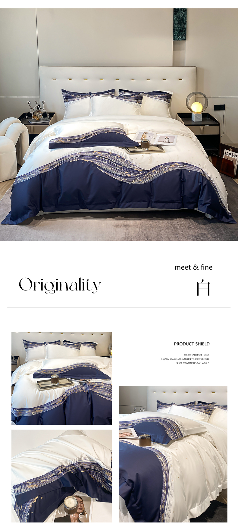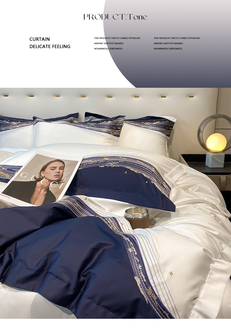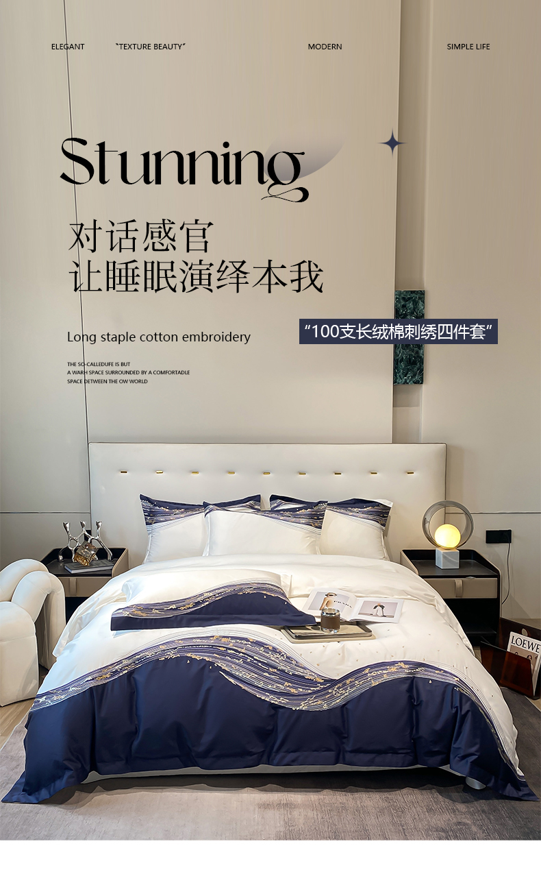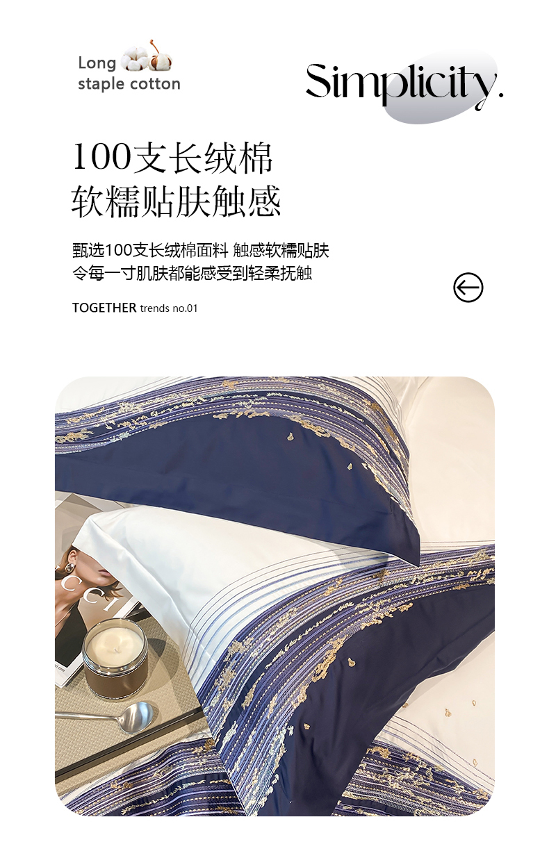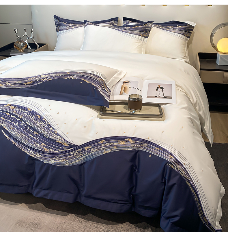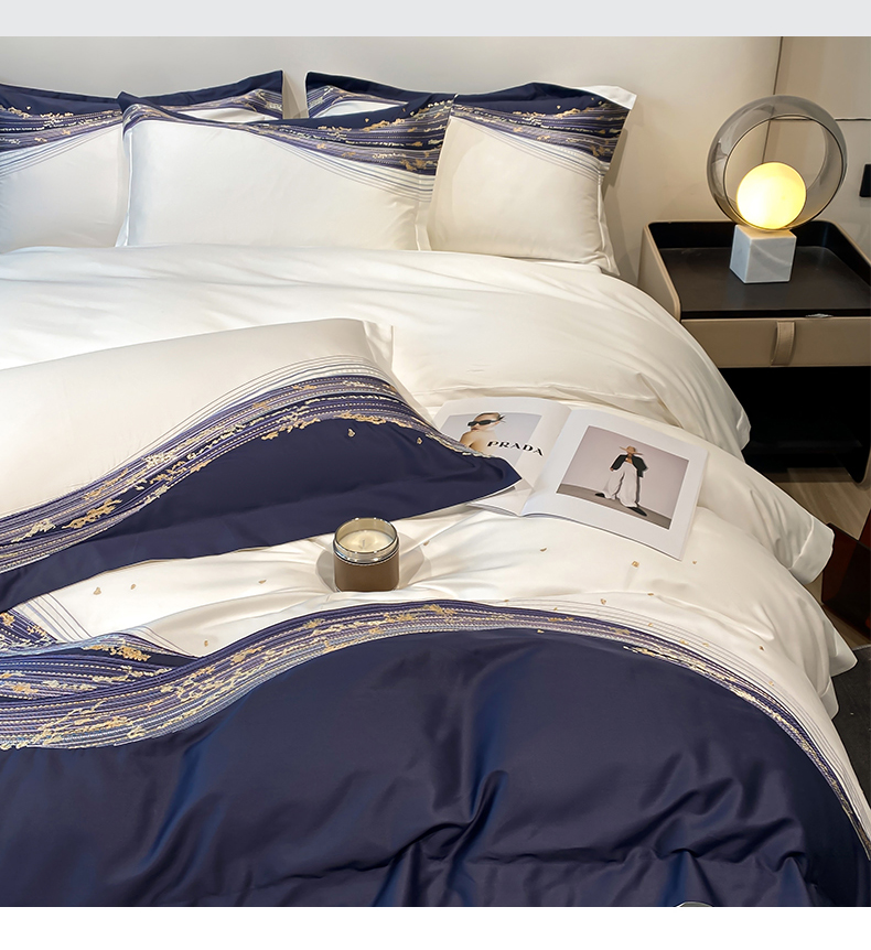 商品名称:魅都100s长绒棉刺绣轻奢四件套-星空 星空-白