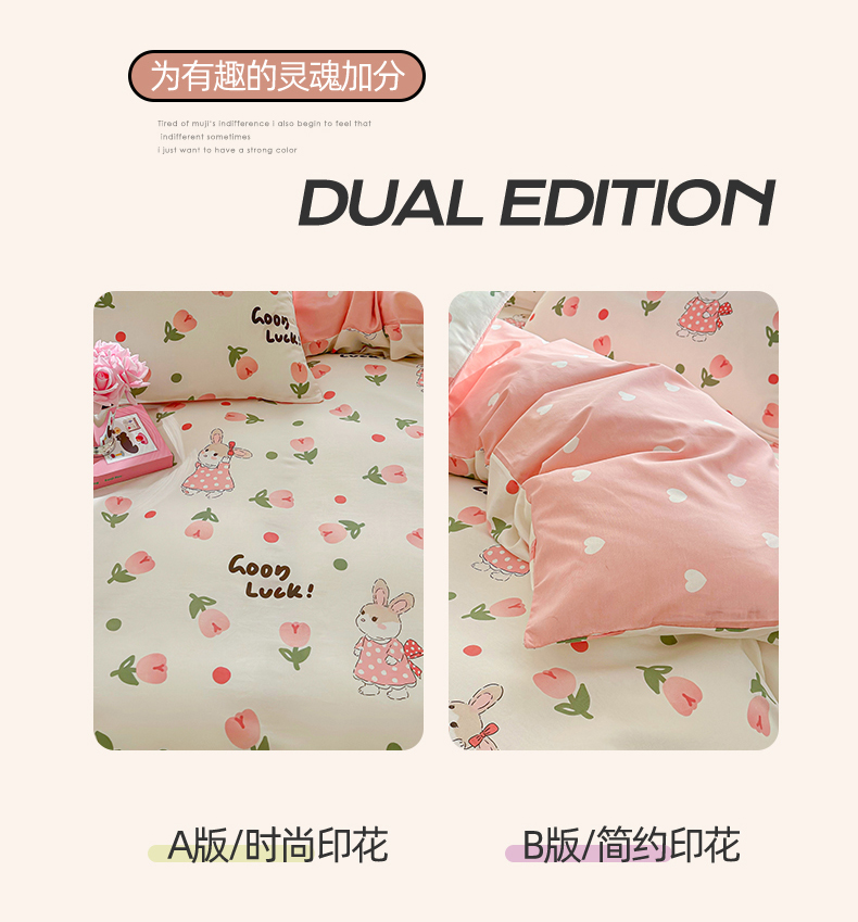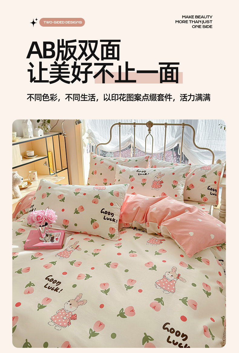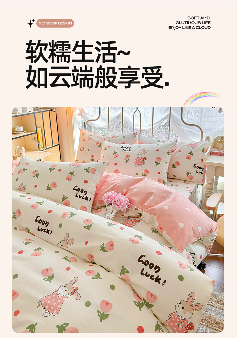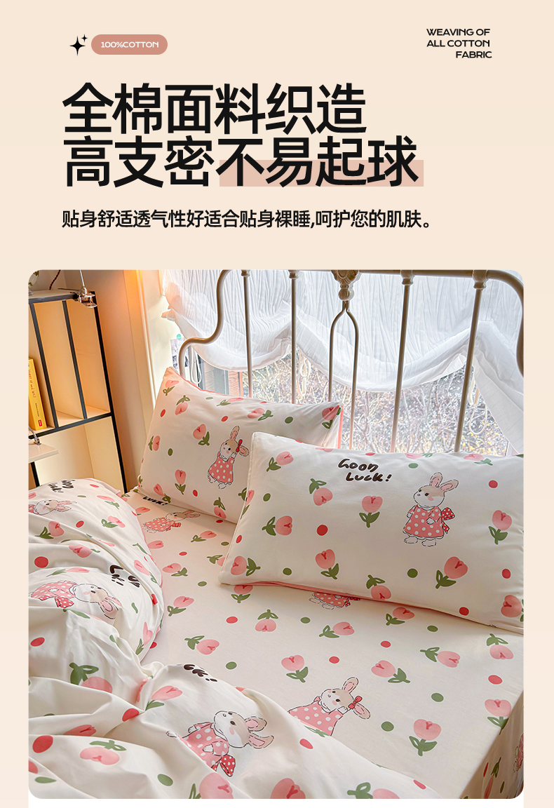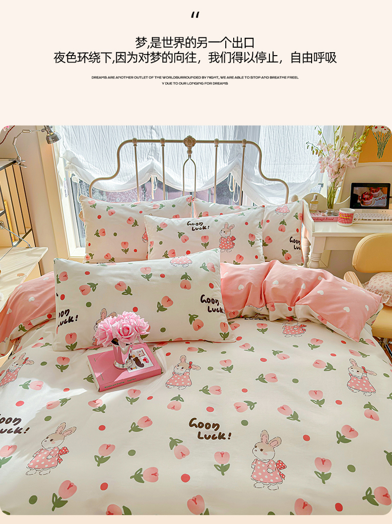 当前位置: 91家纺网 > 商品网购 > 床品套件 > 四件套 > 全棉普通四件套 > 名兮家居 2024新款小清新全棉四件套 兔仙子