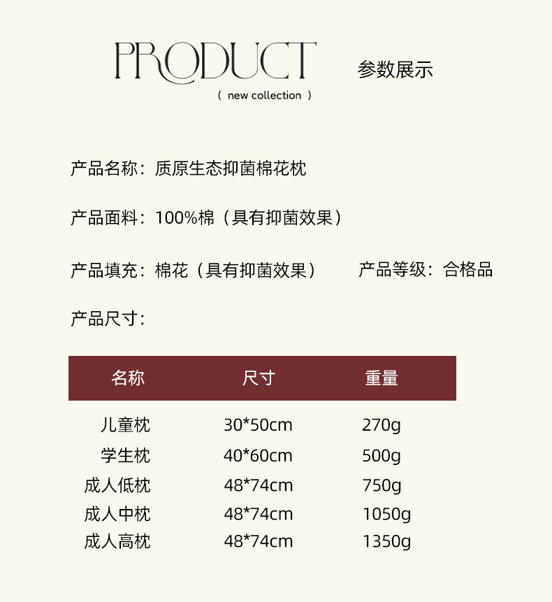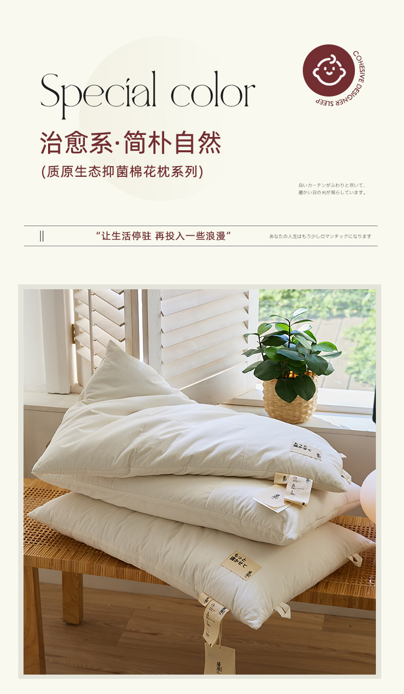 质原生态抑菌棉花枕-成人低枕