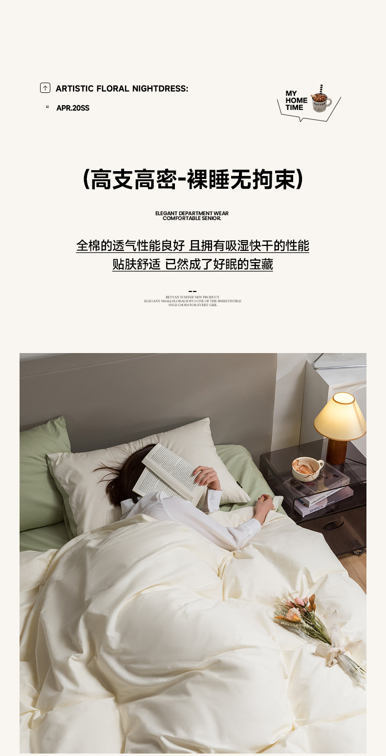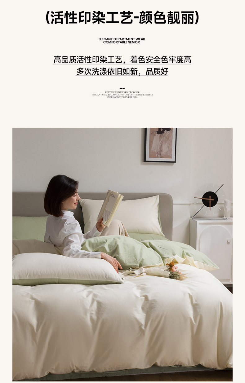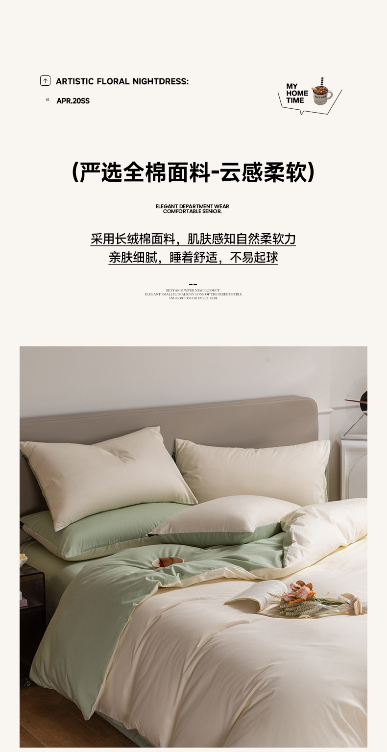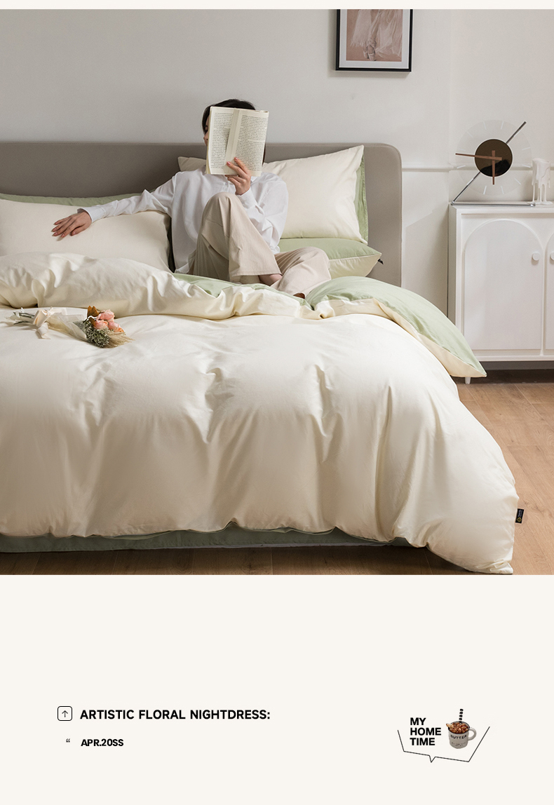 澳梵家居 2024新款60支全棉纯色双拼金标款四件套-素写繁华系列 奶昔白-清风绿