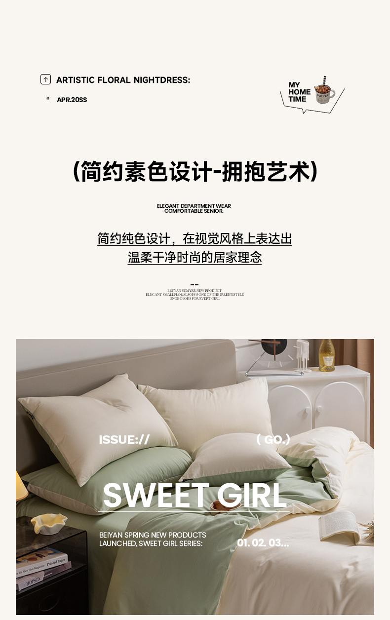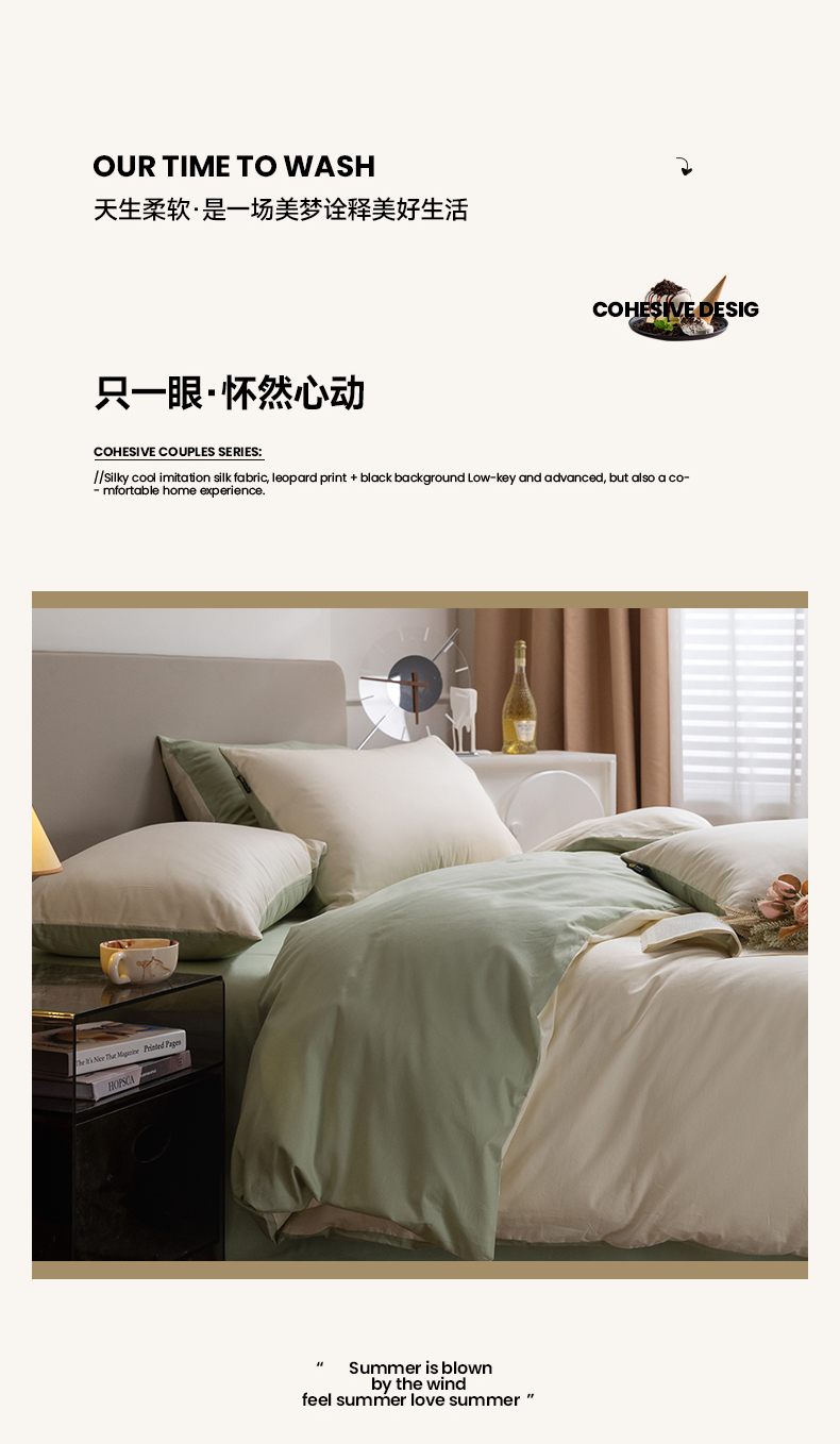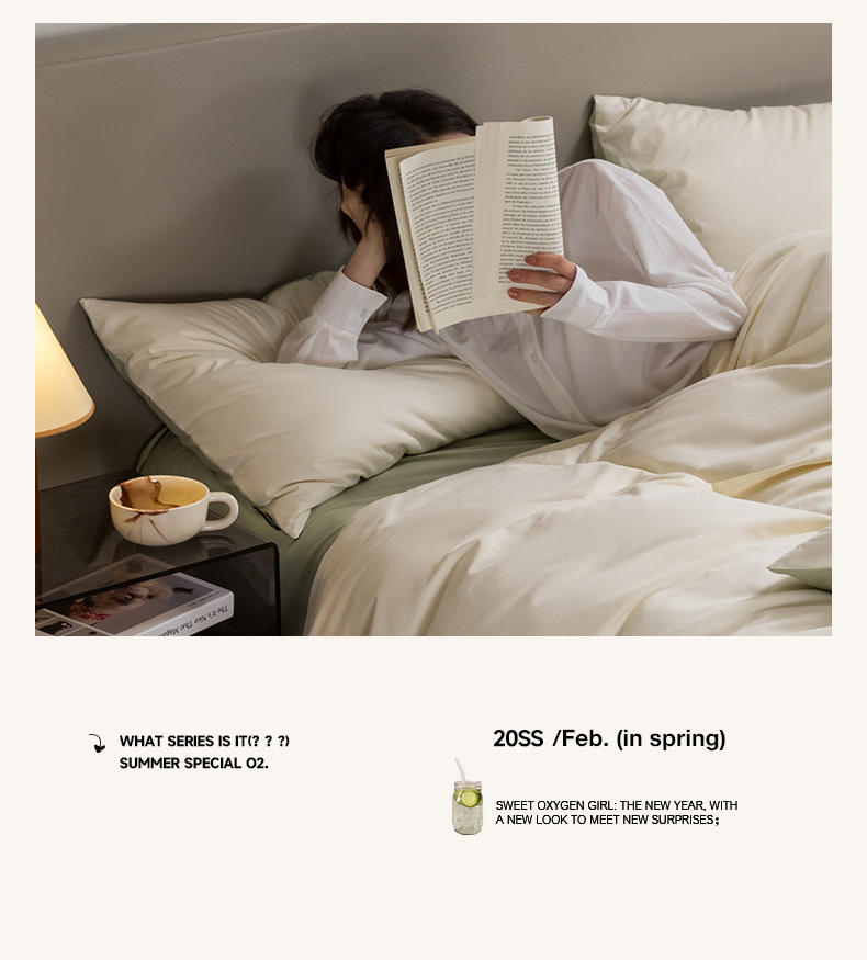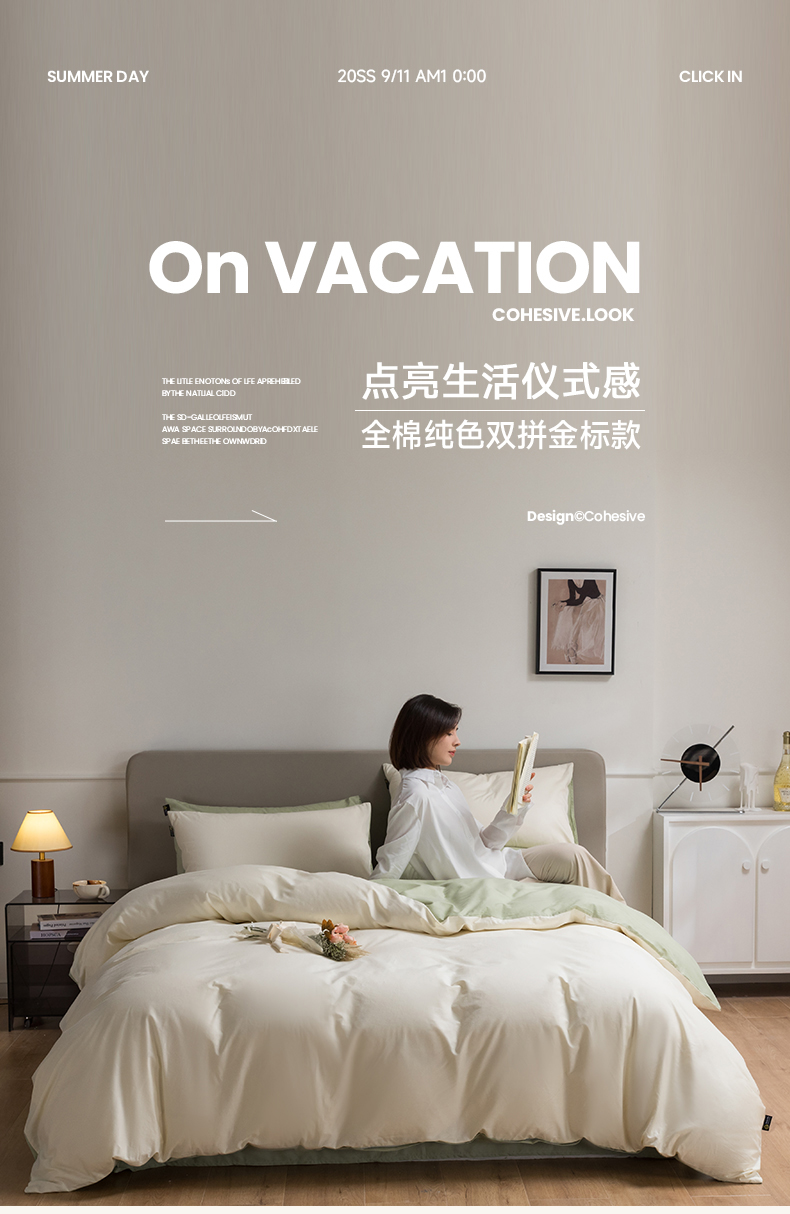 澳梵家居 2024新款60支全棉纯色双拼金标款四件套-素写繁华系列 奶昔白-清风绿