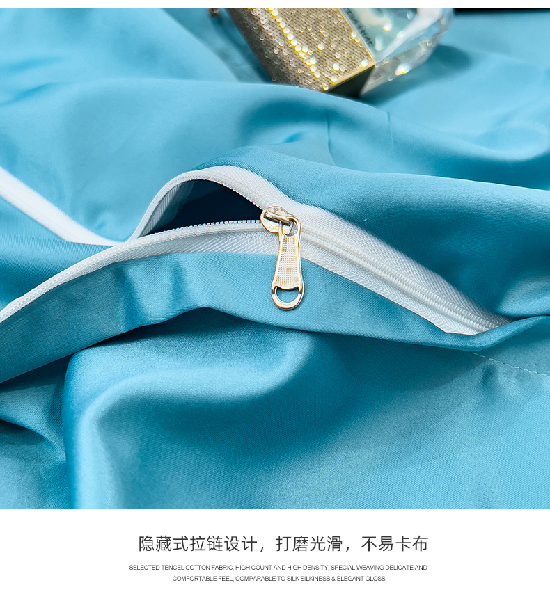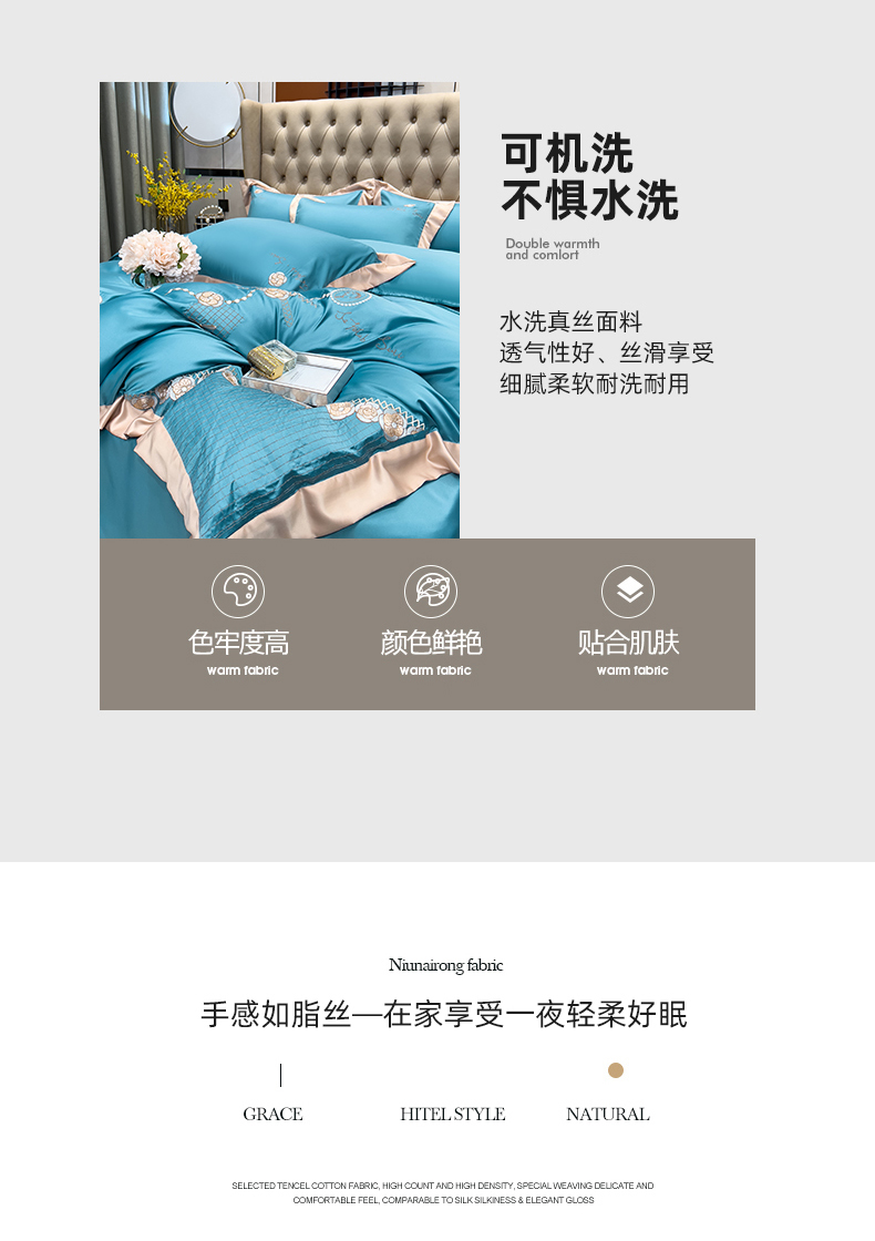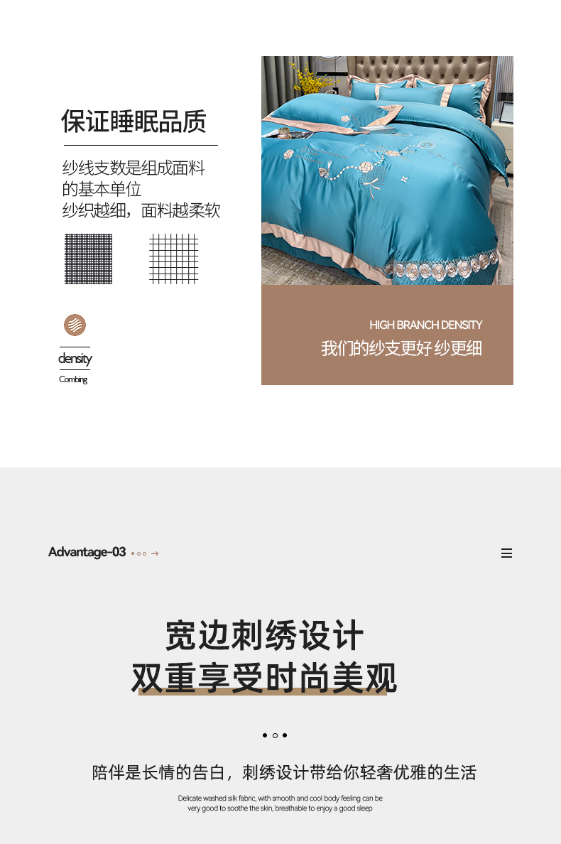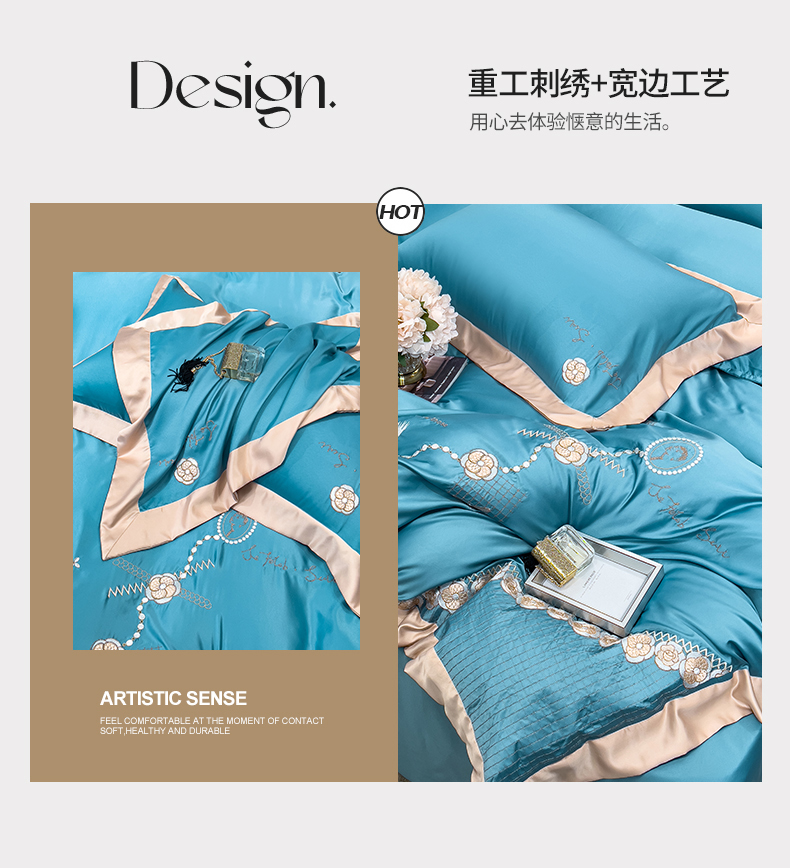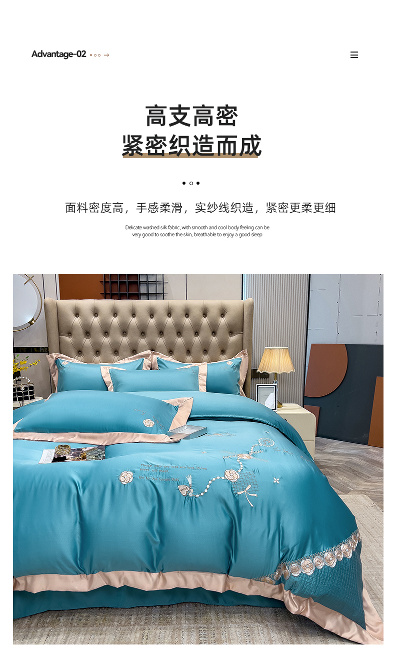欧冠家纺 2024新款绣花水洗真丝四件套莱娅四件套 莱娅-孔雀蓝