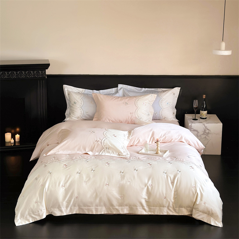 (总)鹿班 2024新款100支长绒棉精致刺绣四件套-情迷莫斯科 标准会员-20,情迷莫斯科-粉色,情迷莫斯科-黄柚色