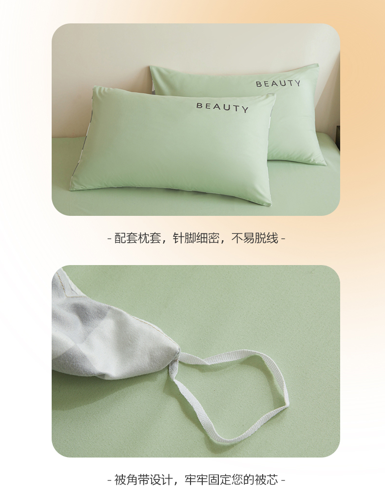 麦空家居 2025新款水洗棉刺绣四件套-布丁(棋盘格) 牛油果