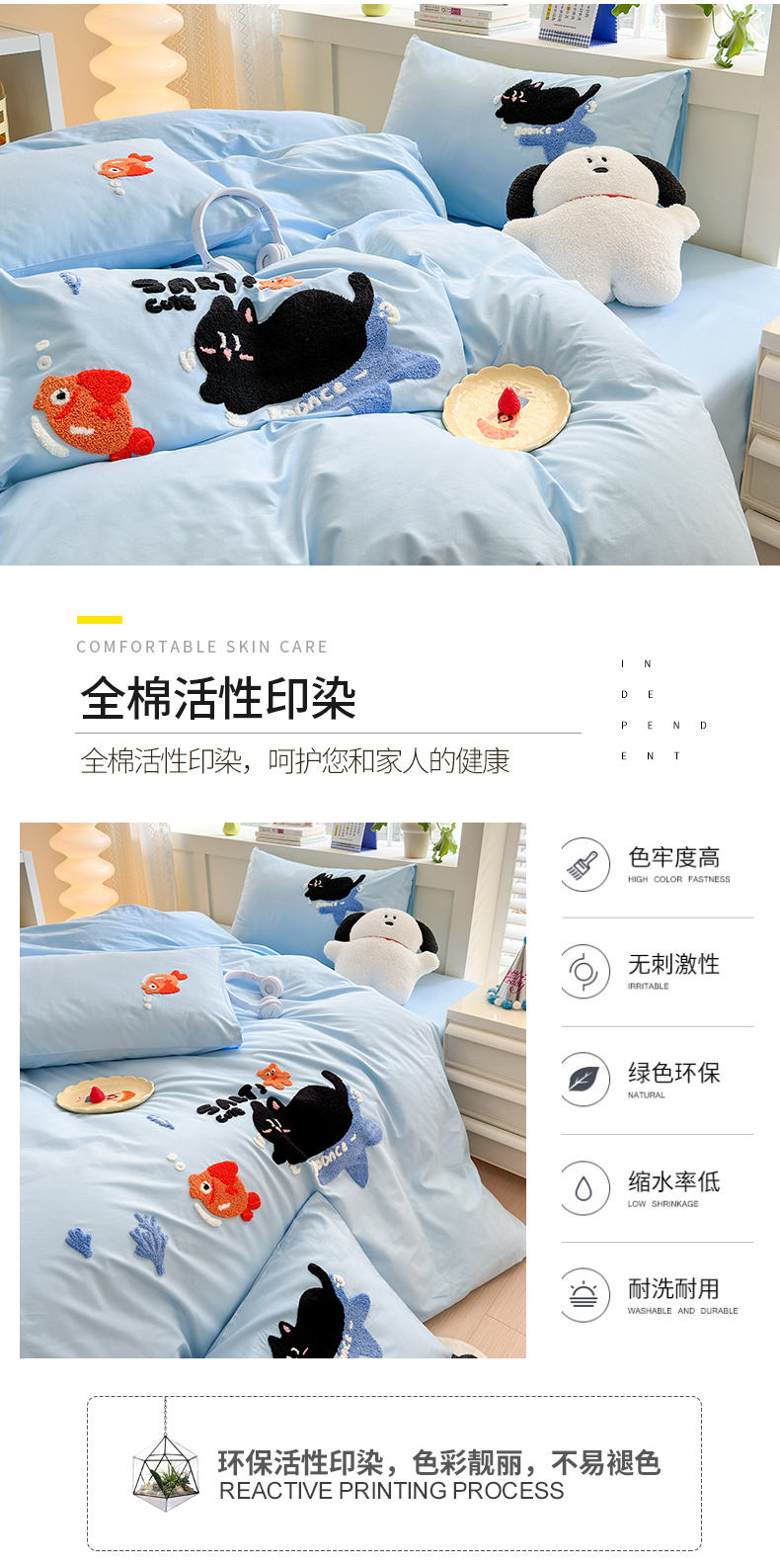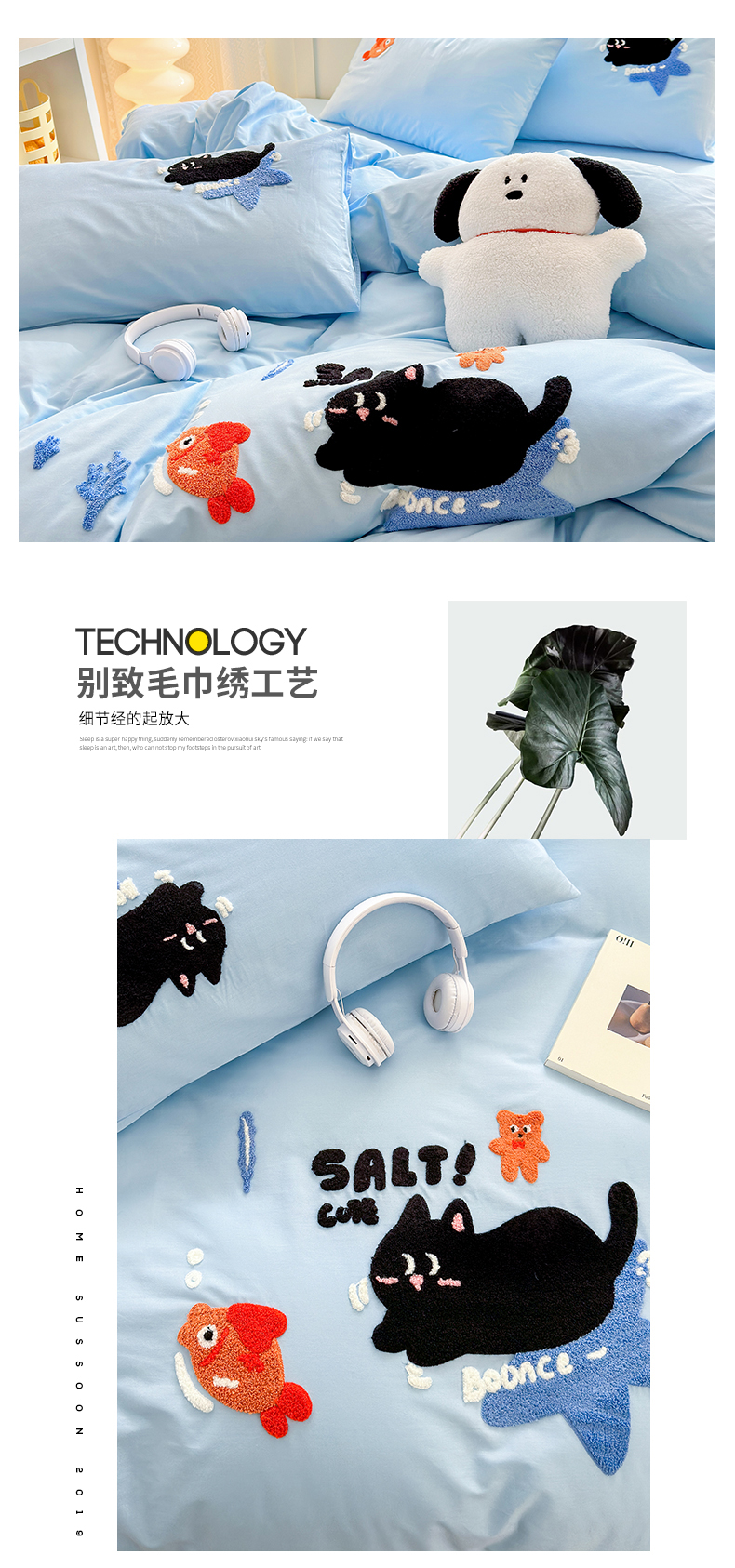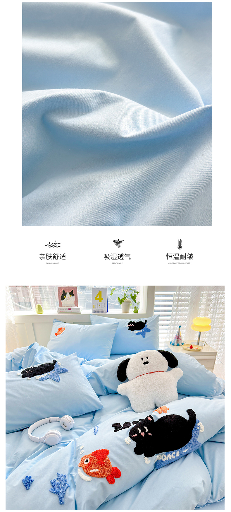 当前位置: 91家纺网 > 商品网购 > 床品套件 > 四件套 > 全棉普通四件套 > 锦觅 2024春夏新品韩式小清新全棉水洗棉毛巾绣40支重工刺绣纯棉四件套 猫咪(天蓝)