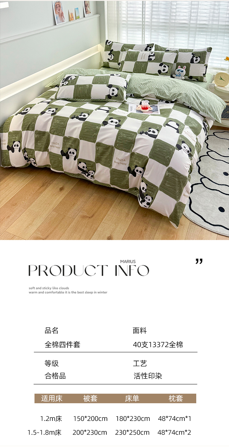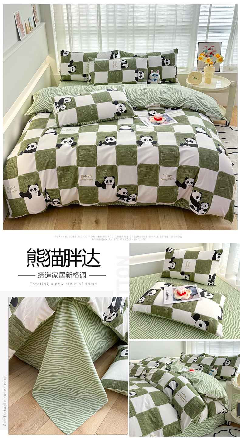 潮邦创意家居 2025新款全棉13070多风格纯棉四件套-卡通系列 熊猫胖达