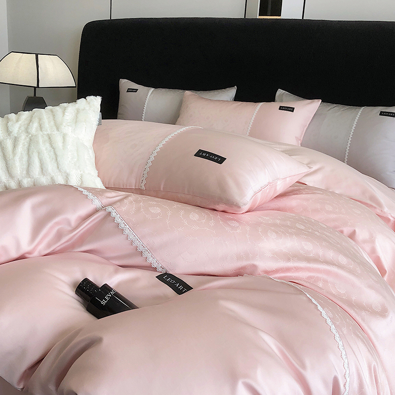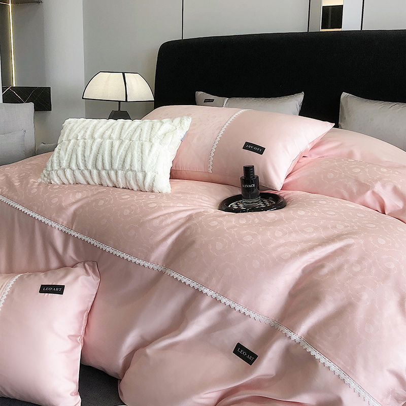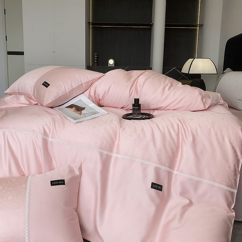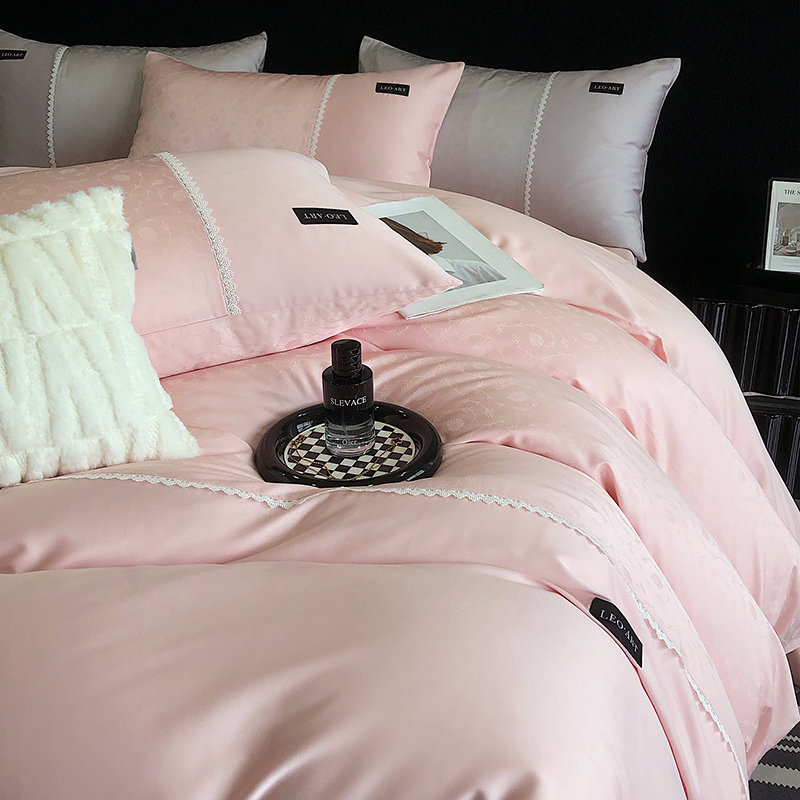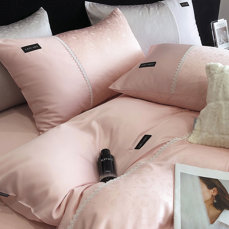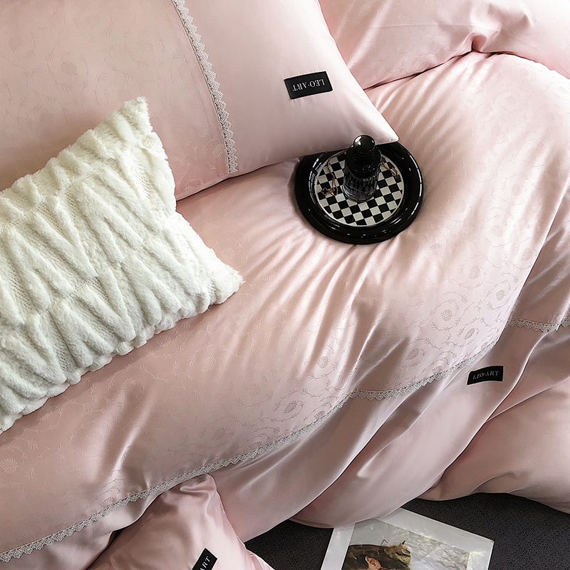佳汐蓝家纺 2024新款天丝棉提花花边四件套 洛可可-粉