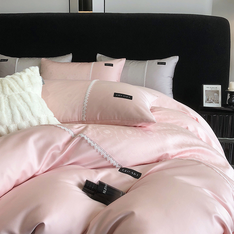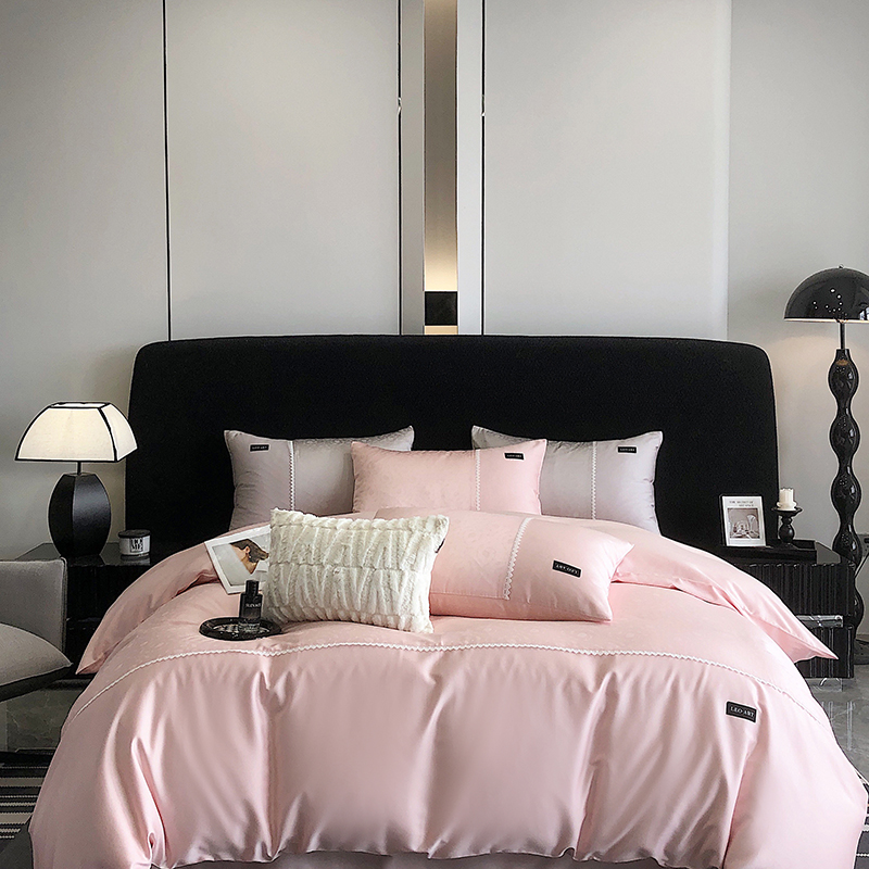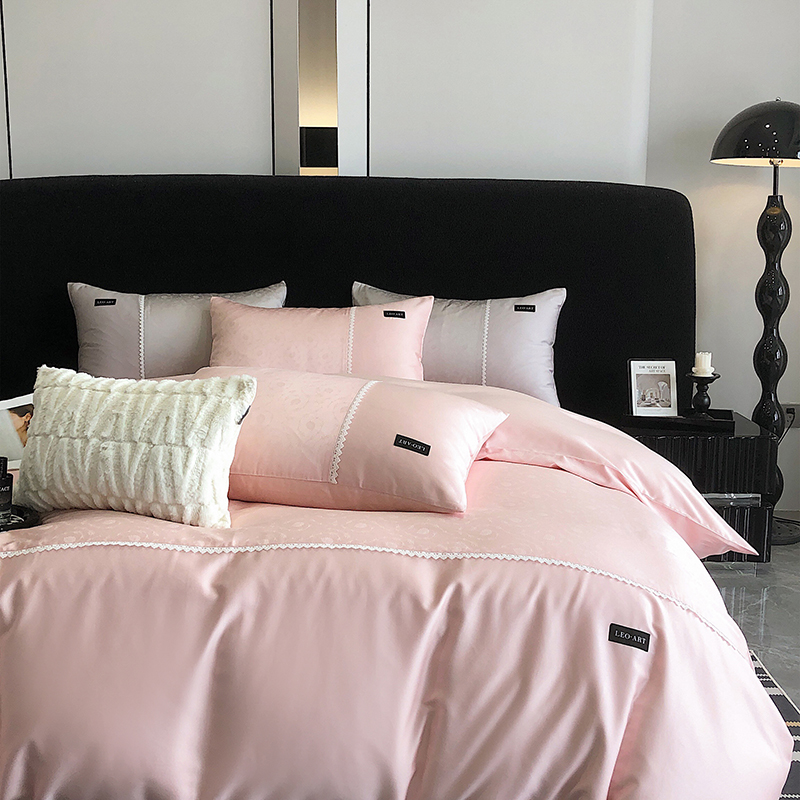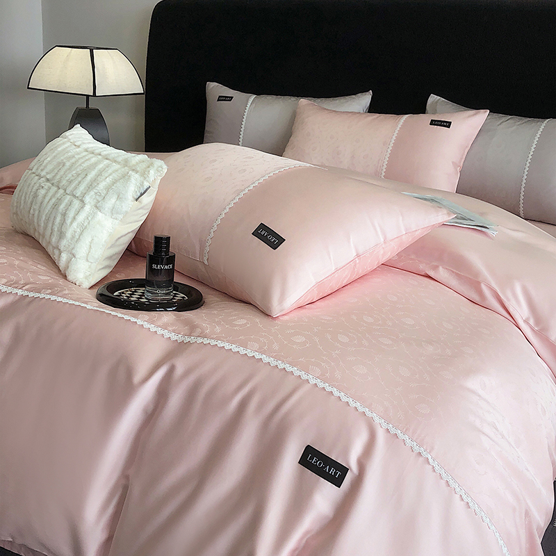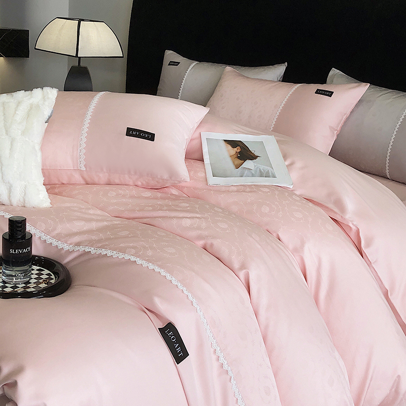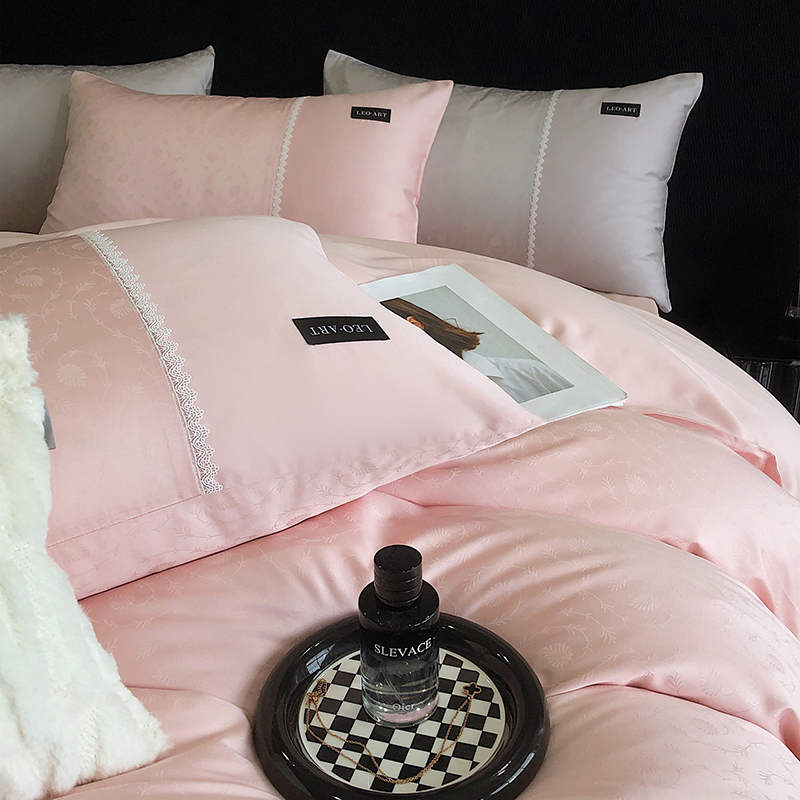 佳汐蓝家纺 2024新款天丝棉提花花边四件套 洛可可-粉