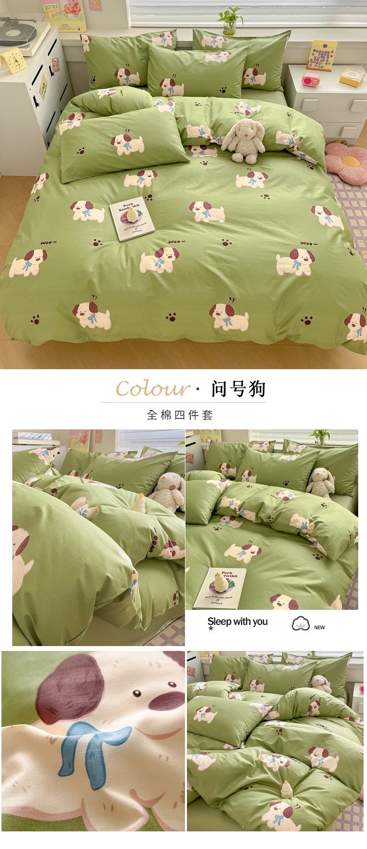 当前位置: 91家纺网 > 商品网购 > 床品套件 > 四件套 > 全棉普通四件套 > 柠馨 2024新款全棉13376乖萌系列四件套(第六批) 问号狗
