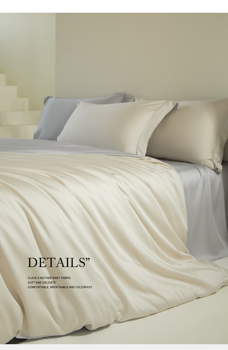 商品名称:(总)618家纺 2024新款A类60S100支兰精天丝四件套-简约系列 天丝双拼米灰