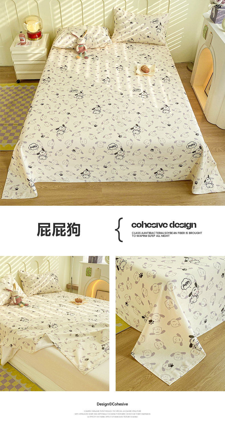 • 91家纺网 家纺一手货源 找家纺 寐眠 2024新款全棉老粗布印花床单床盖 屁屁狗