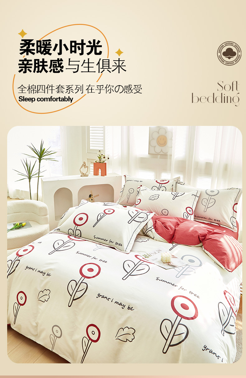 雲归梦 2024新款全棉活性13372印花四件套 纯真 米