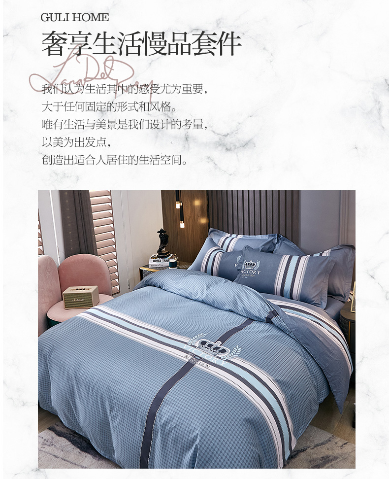 商品名称:雲归梦 2024新款全棉活性13372印花四件套 简单生活