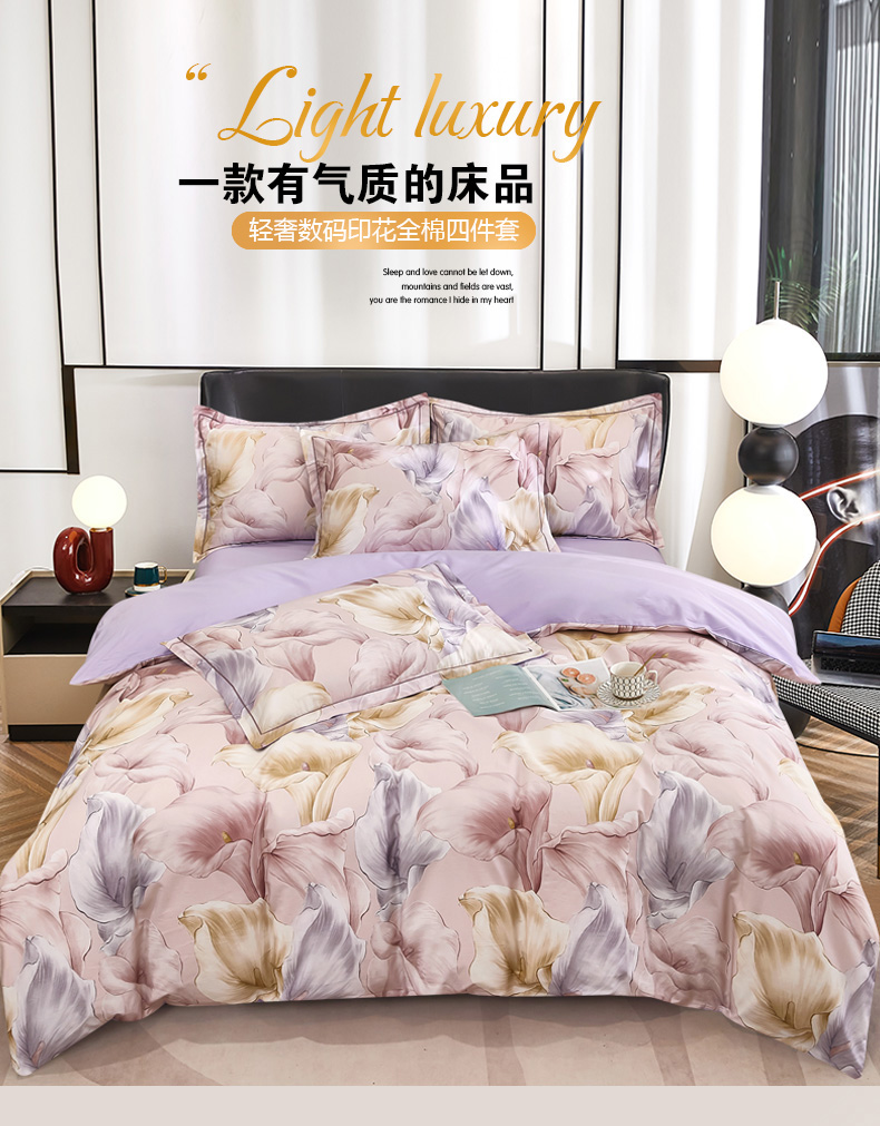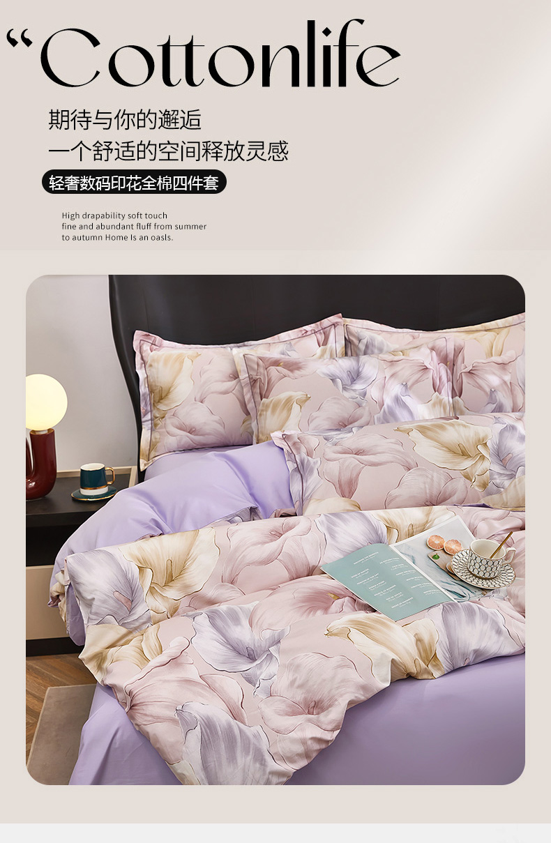 雲归梦 2024新款全棉铂金棉数码印花四件套 步步生莲