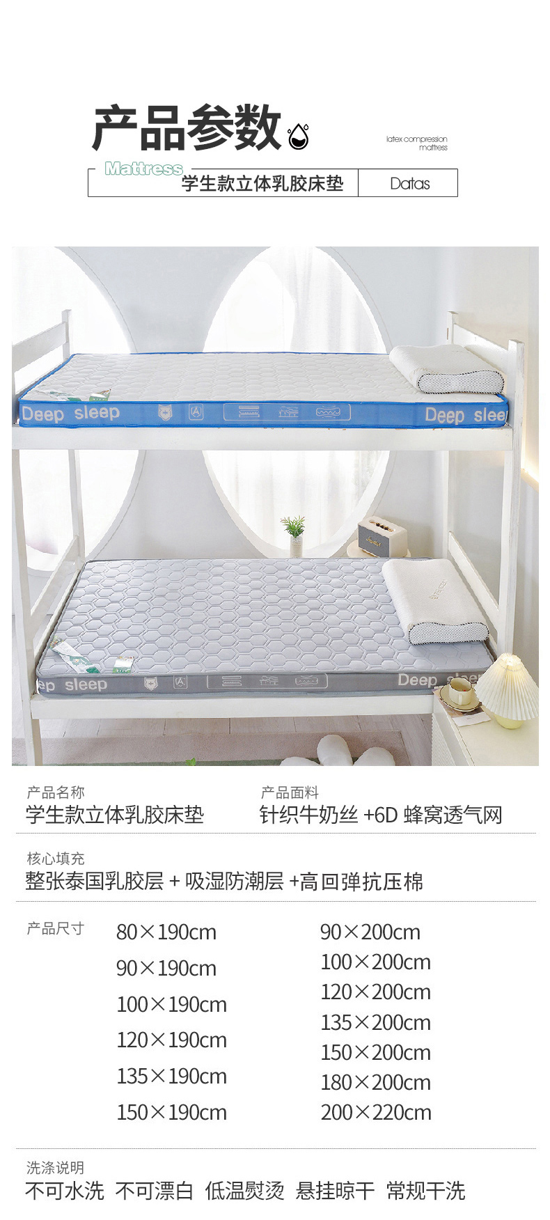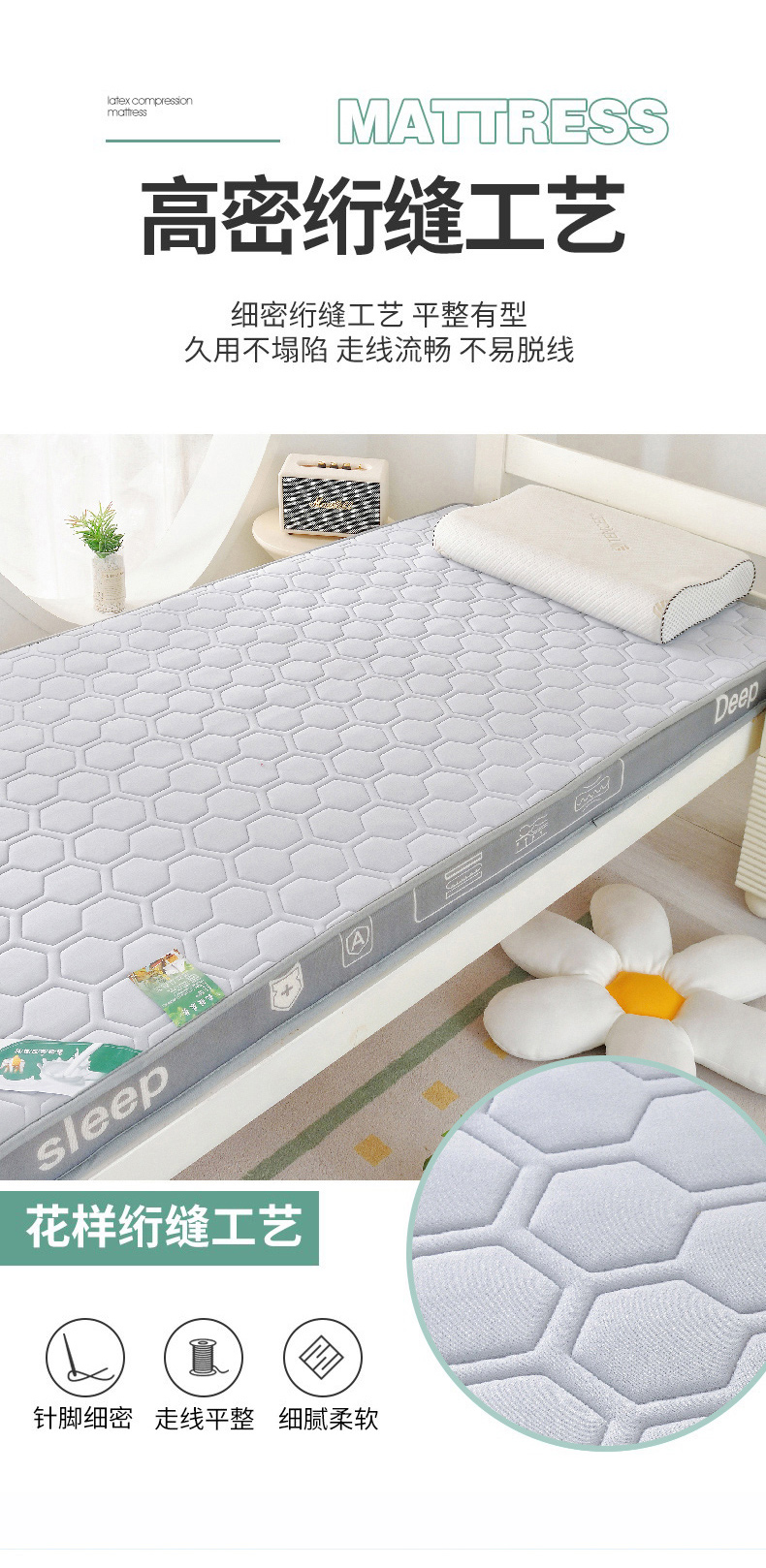 当前位置: 91家纺网 > 商品网购 > 床垫/床褥 > 乳胶床垫 > 张先生2024针织牛奶丝透气网立体乳胶床垫学生床垫 深睡-灰白