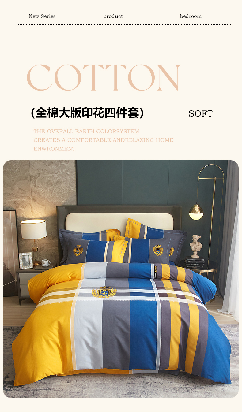 启航家居 2025春夏直播爆款全棉大版印花四件套 卡菲洛