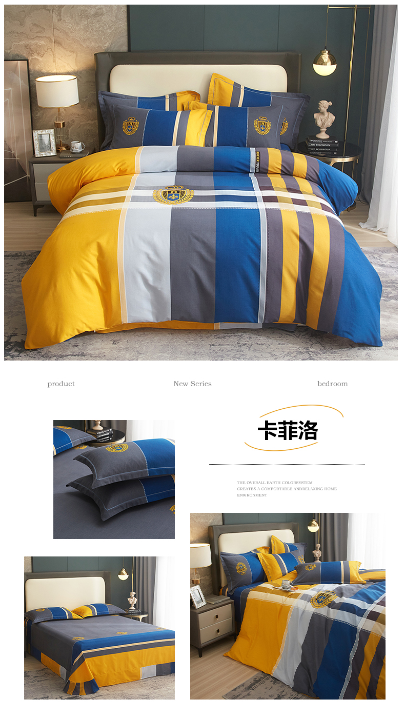 商品名称:启航家居 2025春夏直播爆款全棉大版印花四件套 卡菲洛