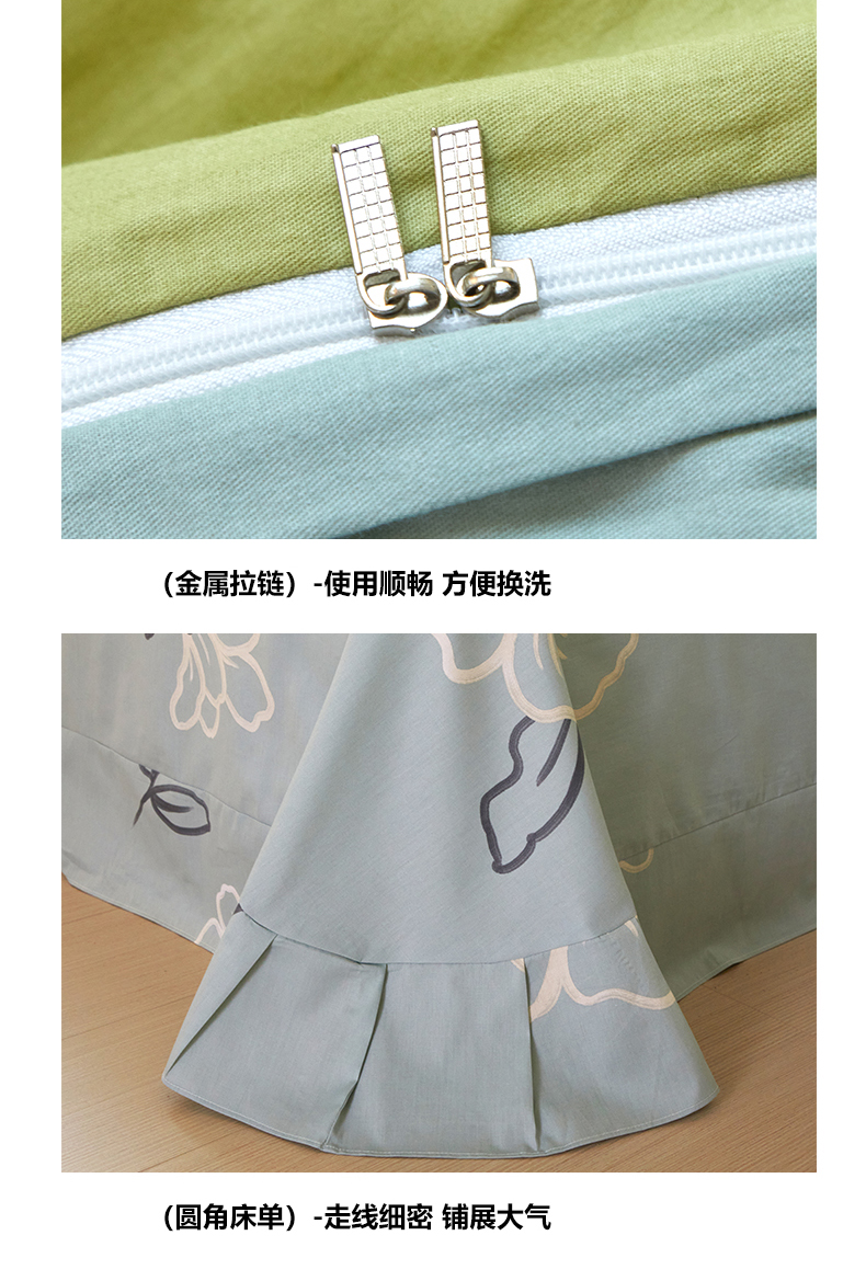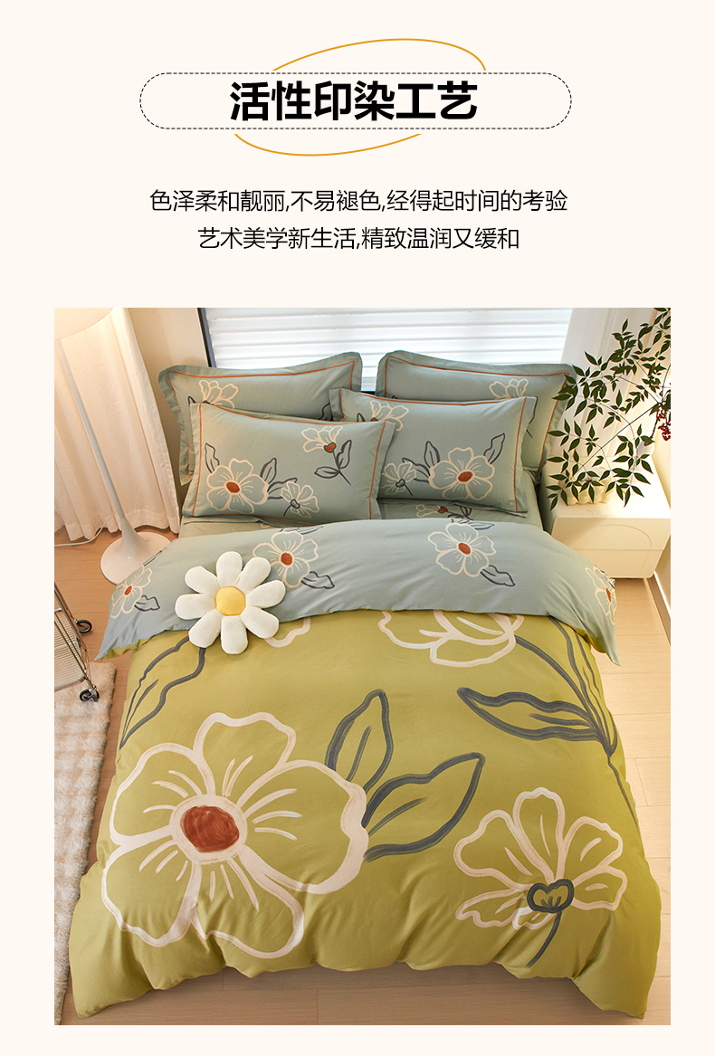 商品名称:启航家居 2025春夏直播爆款全棉大版印花四件套 绒朵绿