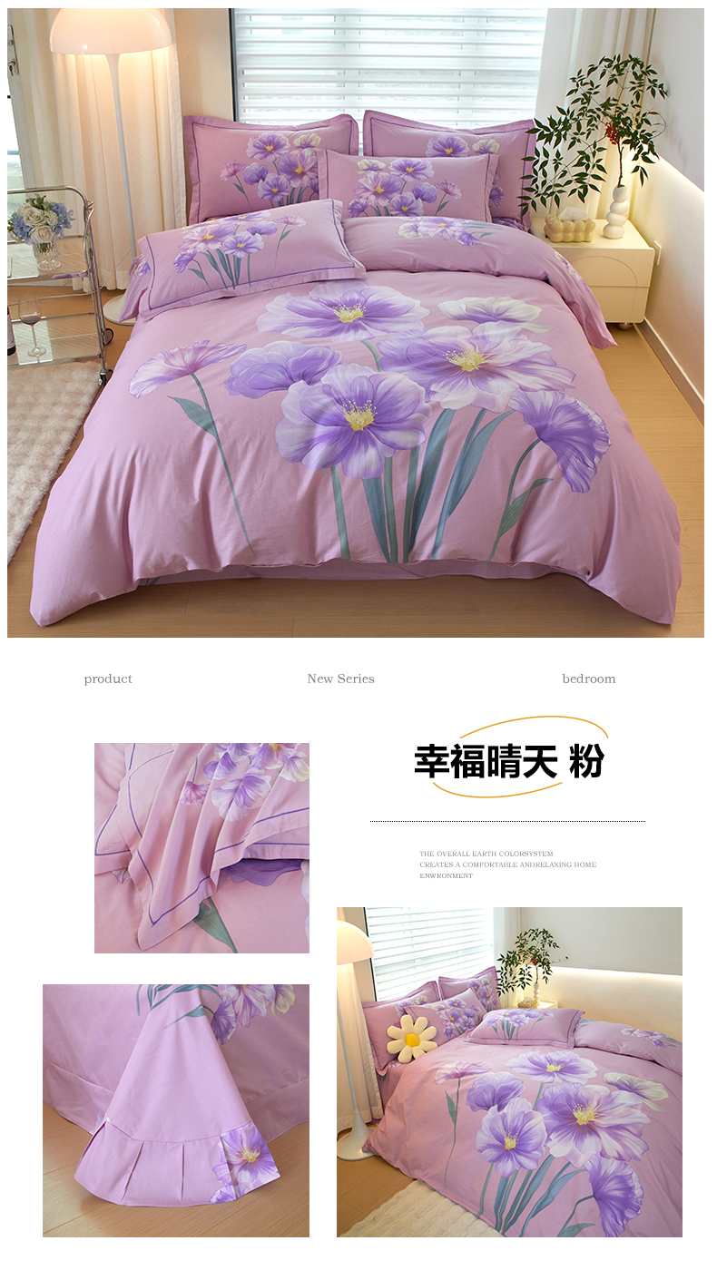 商品名称:启航家居 2025春夏直播爆款全棉大版印花四件套 幸福晴天粉