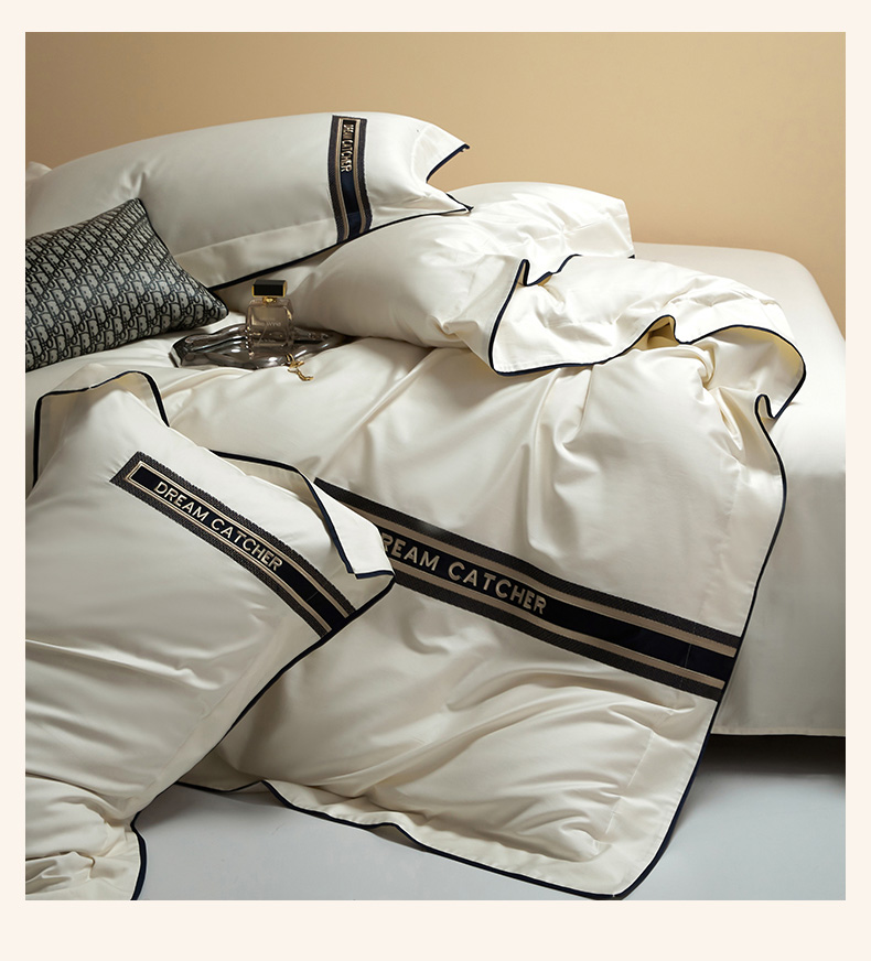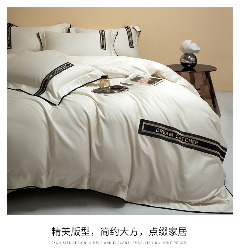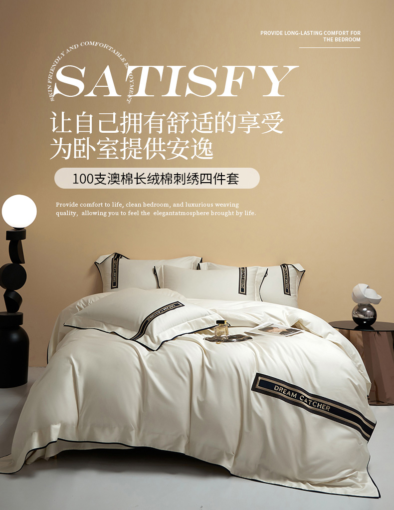 爱缦 2024新款100支澳棉CR工艺极简轻奢刺绣四件套-茹伊 风格一 富士白