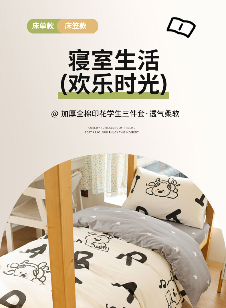 当前位置: 91家纺网 > 商品网购 > 床品套件 > 四件套 > 全棉普通四件套 > 宅部落 2024新款全棉三件套纯棉学生宿舍上下铺六件套 快乐无限