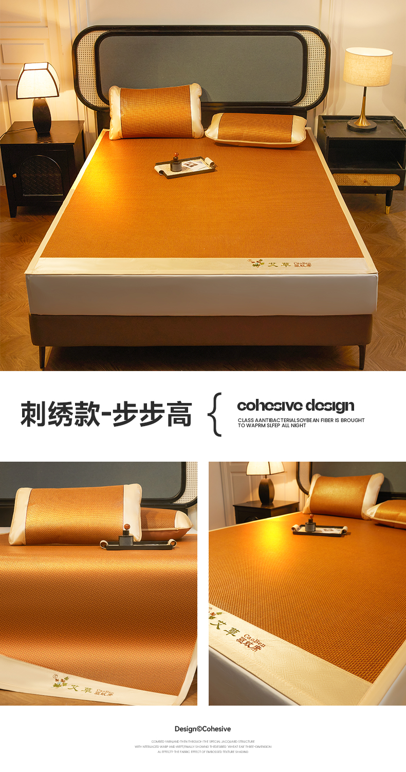 商品名称:大元 2026新款凉席刺绣艾草藤席 刺绣款-步步高