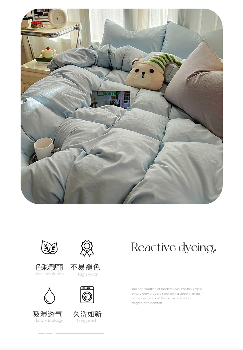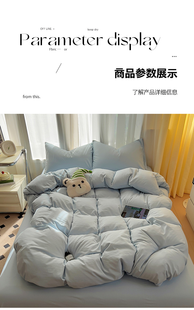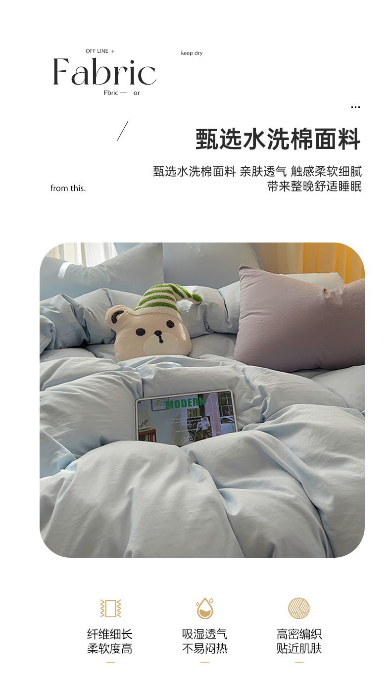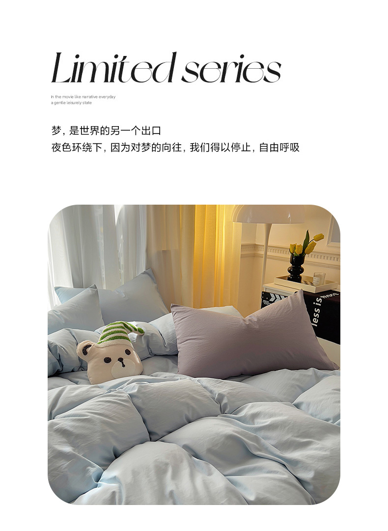 当前位置: 91家纺网 > 商品网购 > 床品套件 > 四件套 > 水洗棉四件套 > 易辰美 2024新款亲肤水洗棉四件套 浅蓝色