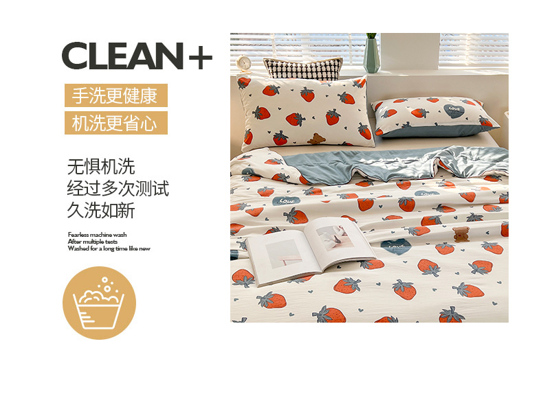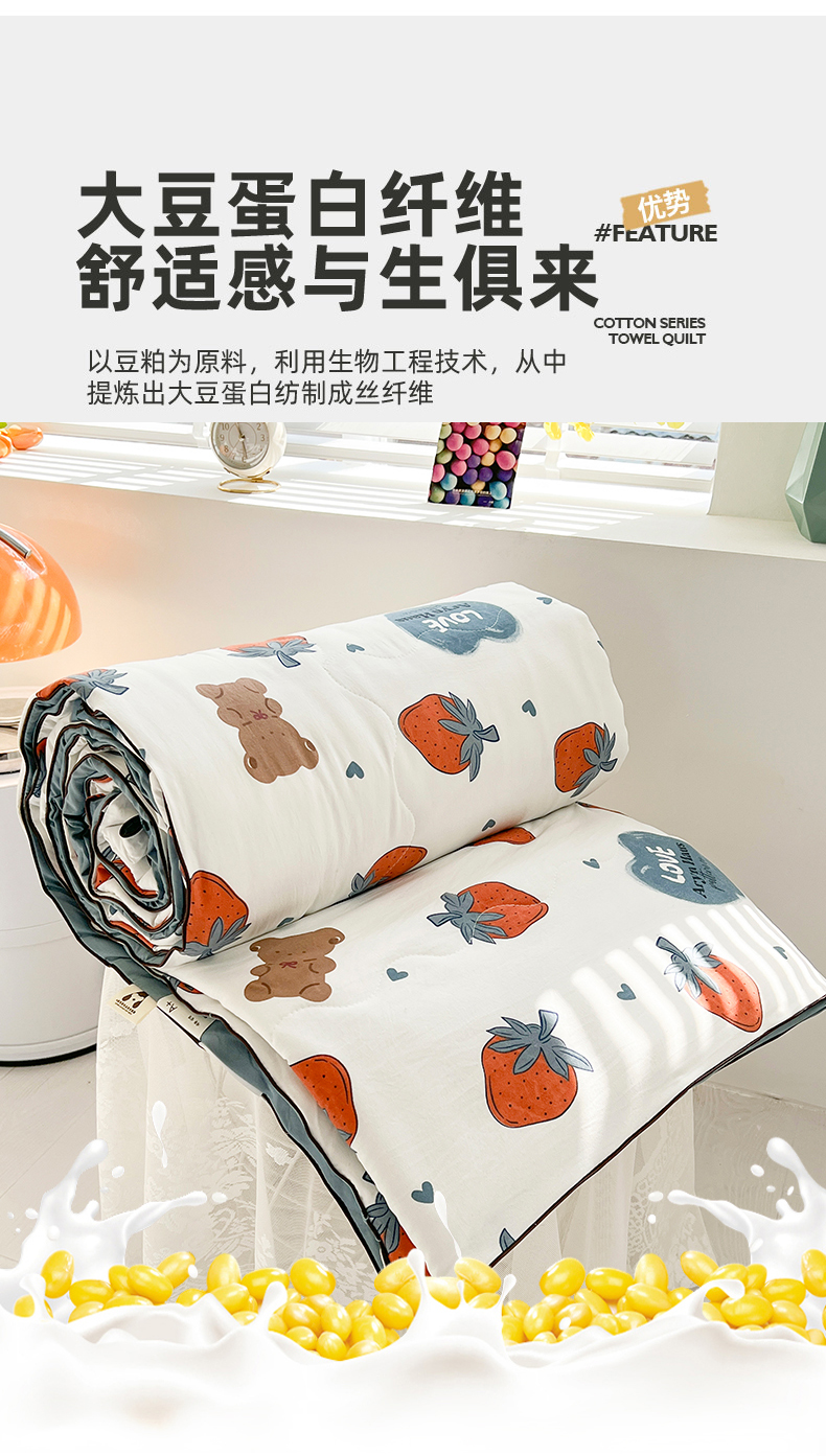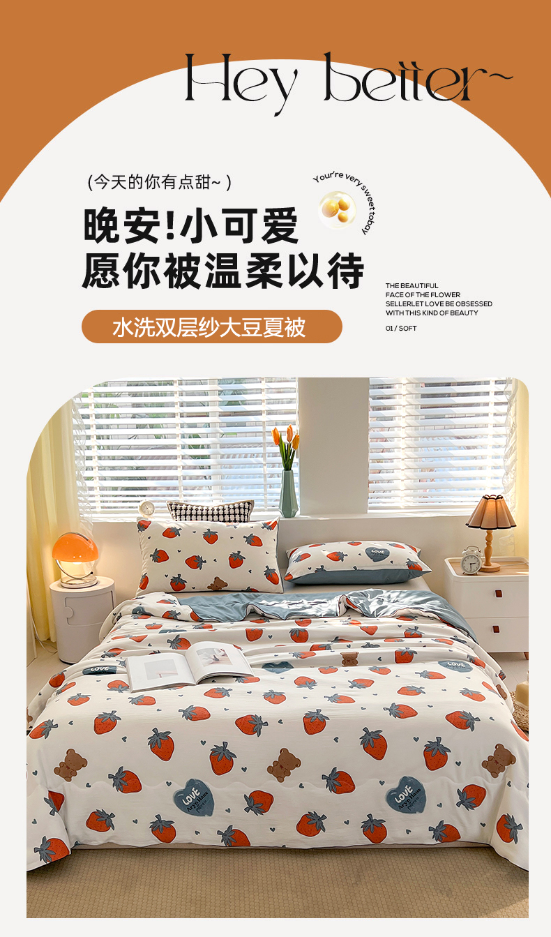 艺菲阁家纺 2024新款大豆蛋白水洗双层纱夏被 莓天开心