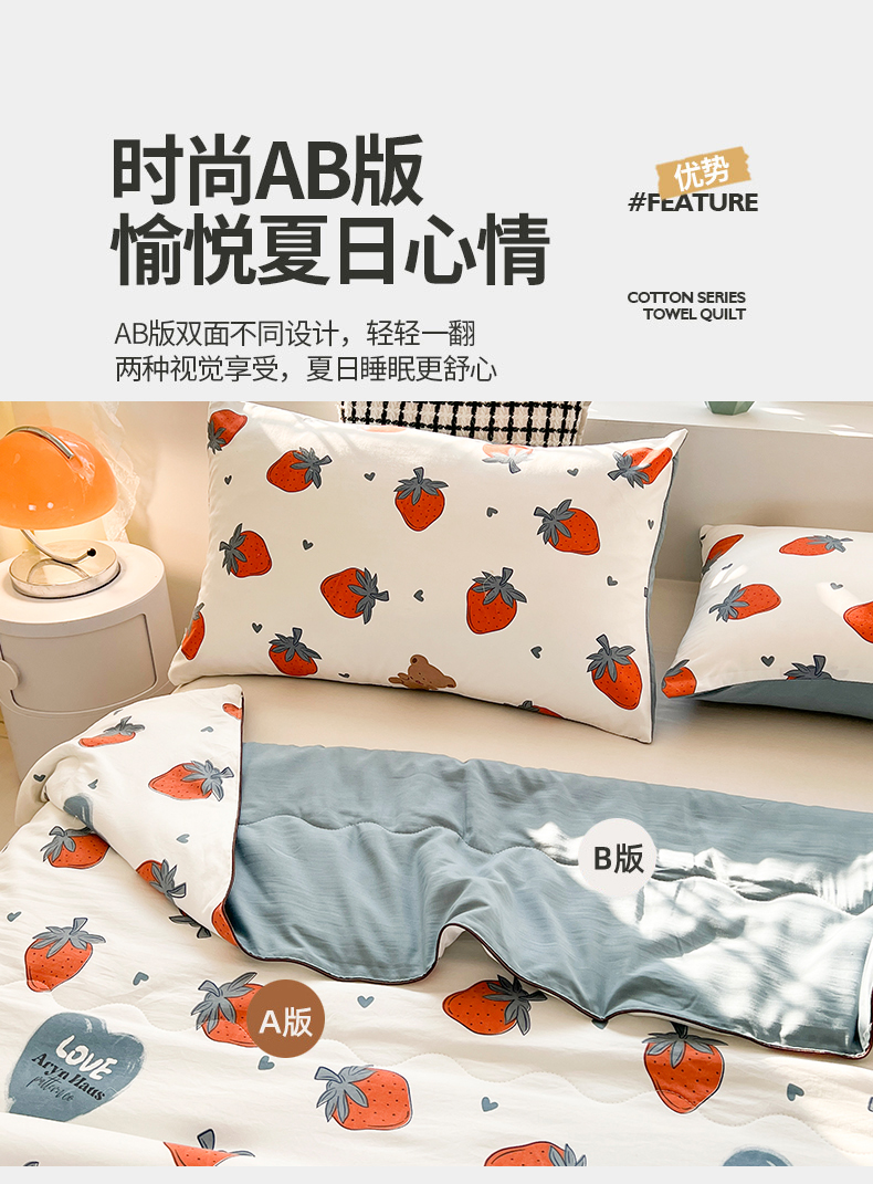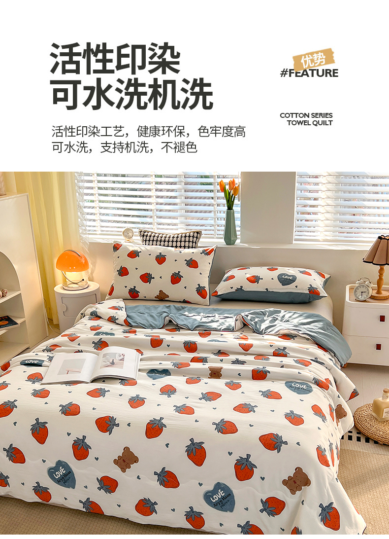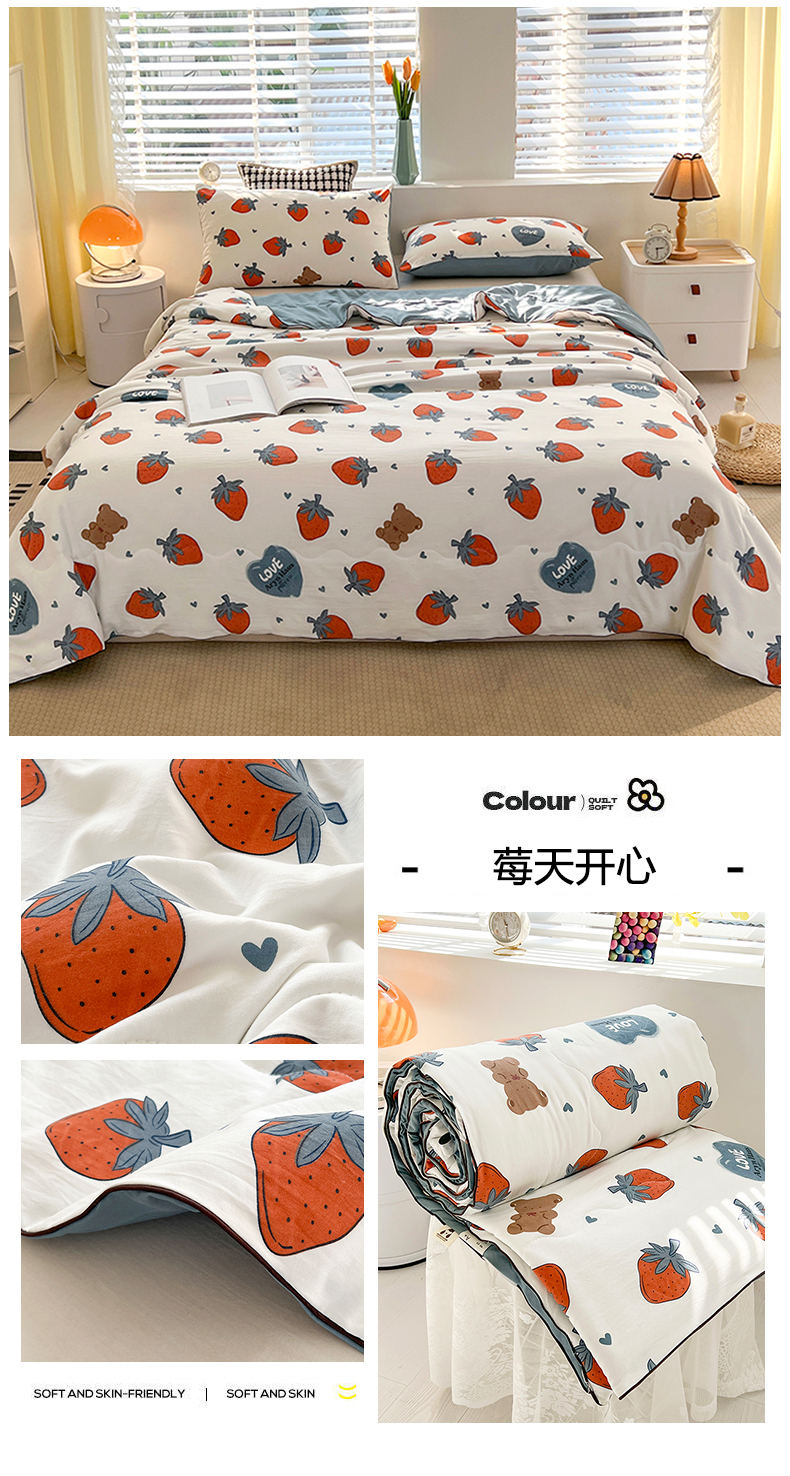 商品名称:艺菲阁家纺 2024新款大豆蛋白水洗双层纱夏被 莓天开心