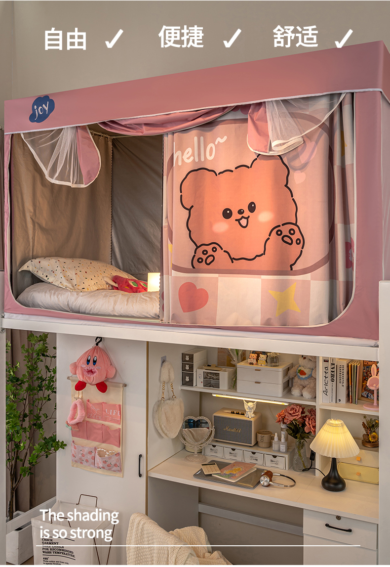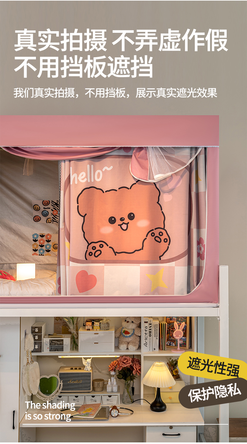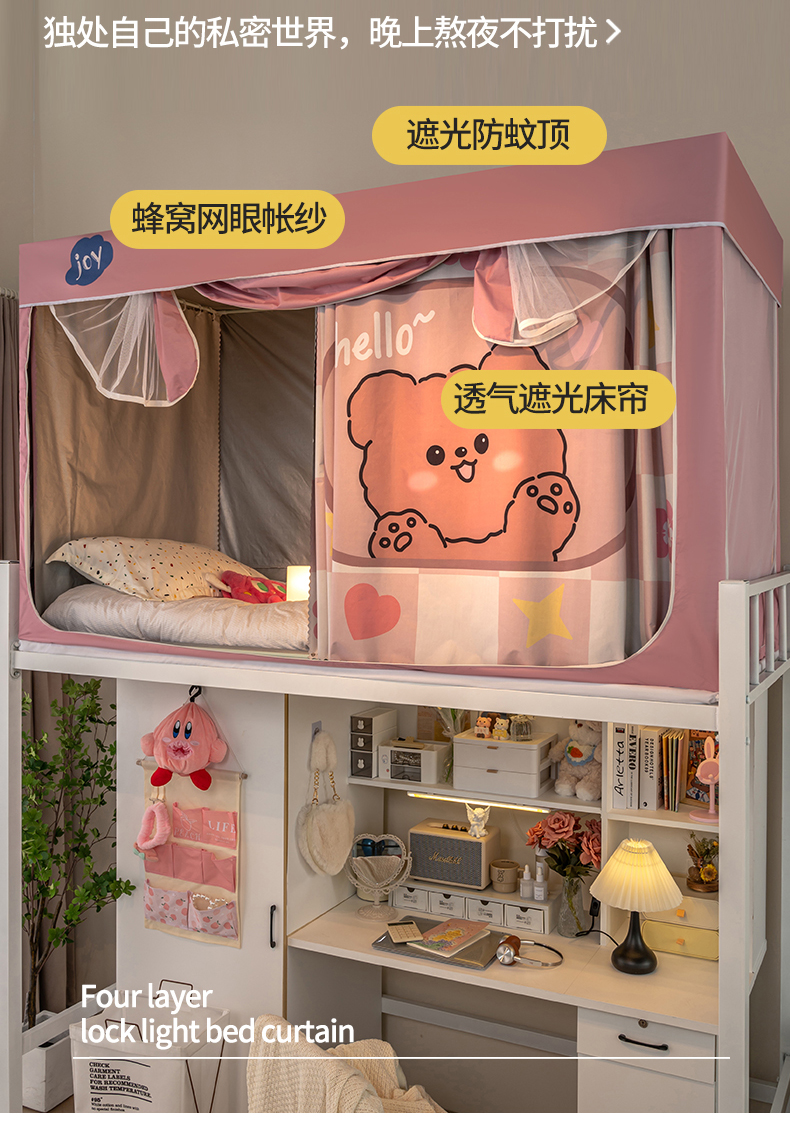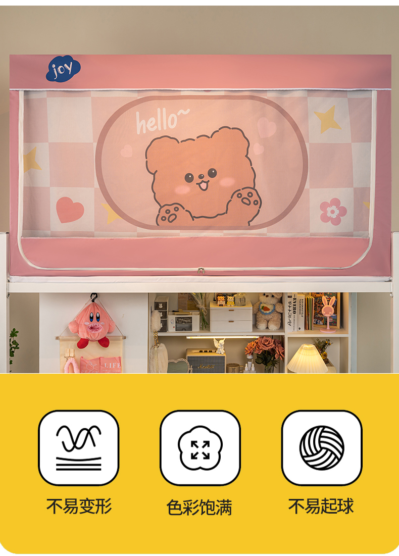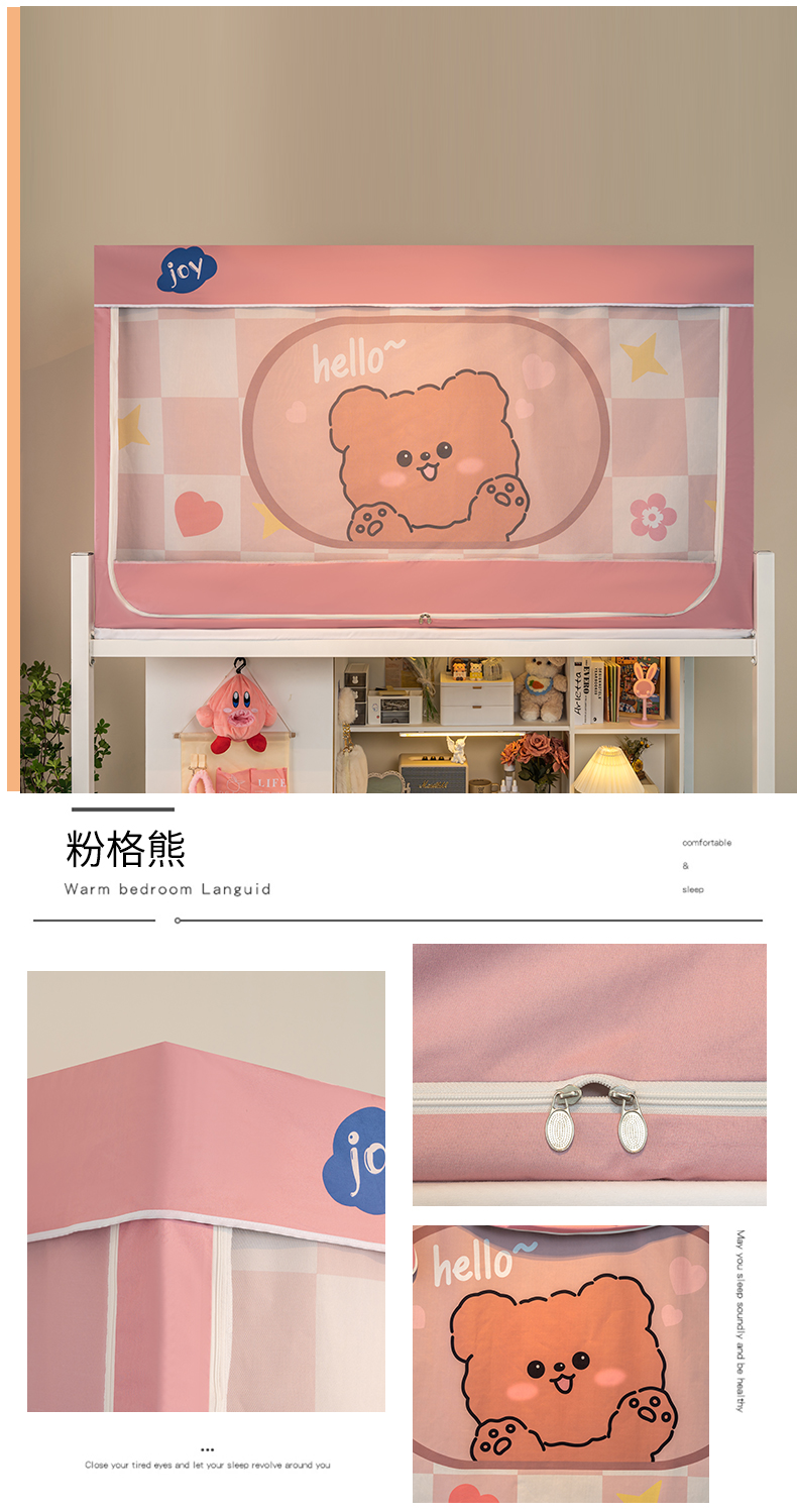商品名称:新太阳蚊帐 2025新款涂层遮光防蚊款学生床帘 粉格熊