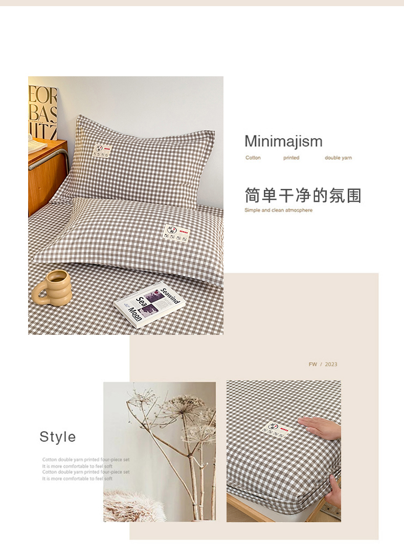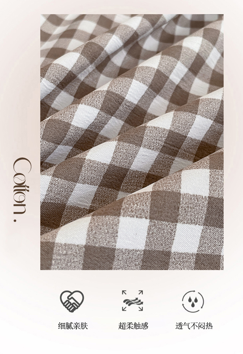 商品名称:2025新款水洗棉麻单层枕套宿舍枕芯内胆套枕头套-简约格子 小格-灰