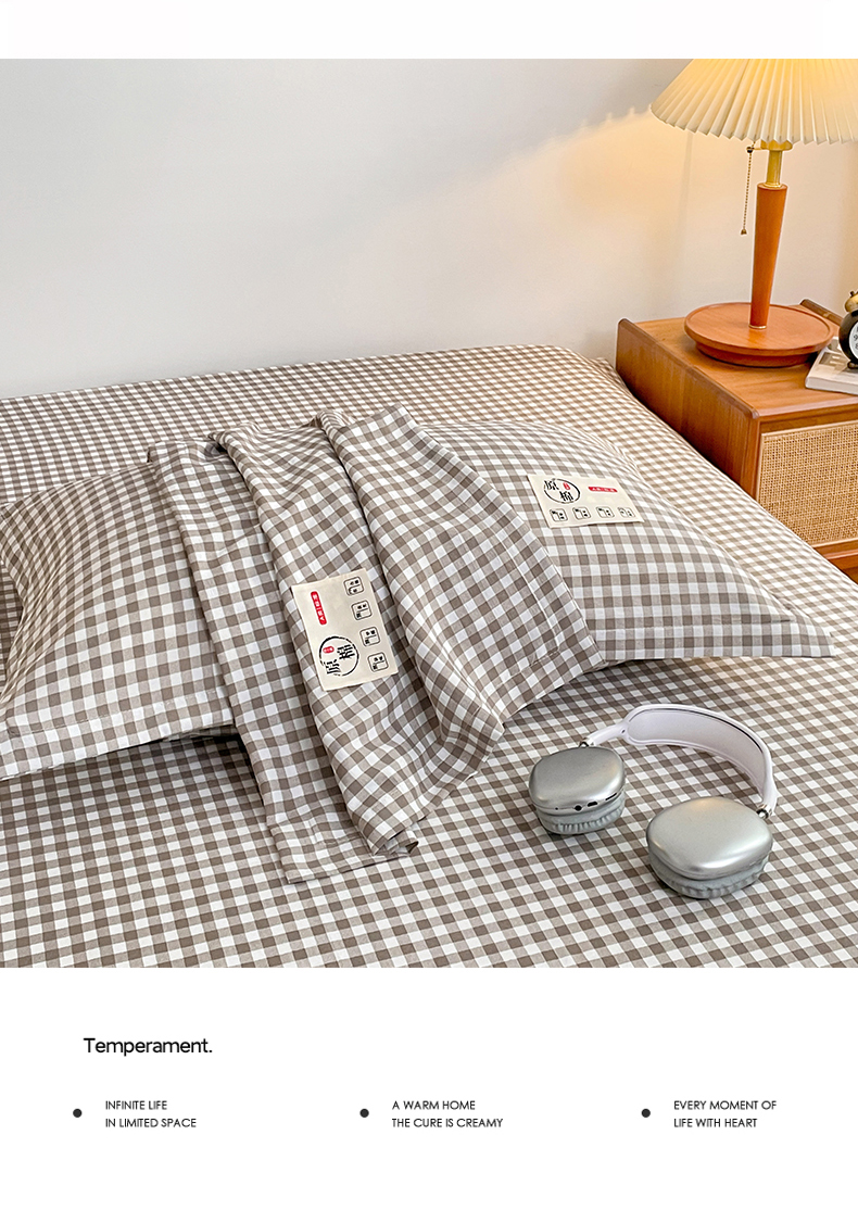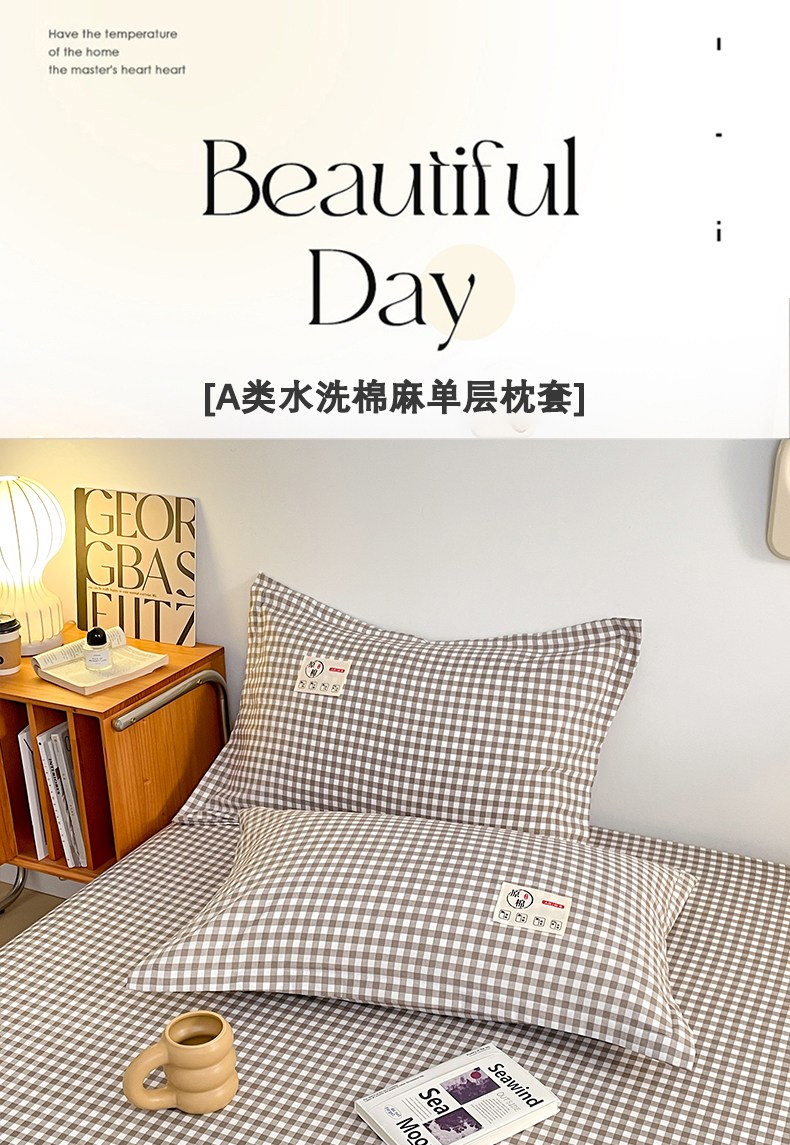 2025新款水洗棉麻单层枕套宿舍枕芯内胆套枕头套-简约格子 小格-灰