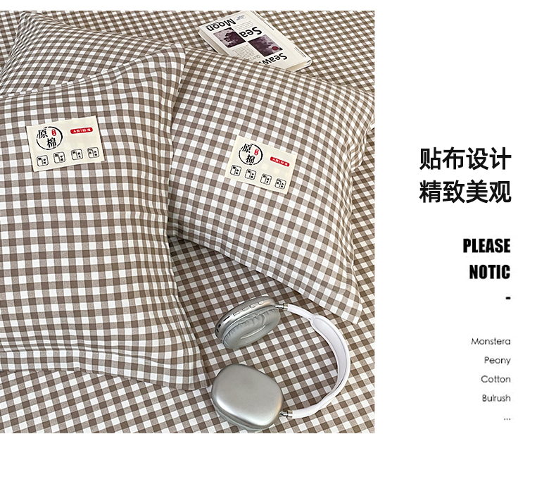 • 91家纺网 家纺一手货源 找家纺 圣比熊 2025新款水洗棉麻单层床笠席梦思床垫保护套床单套加枕套-简约格子小格-灰