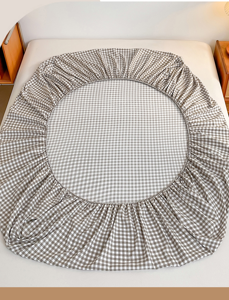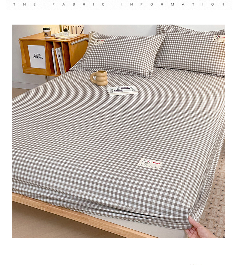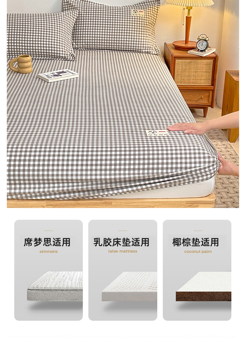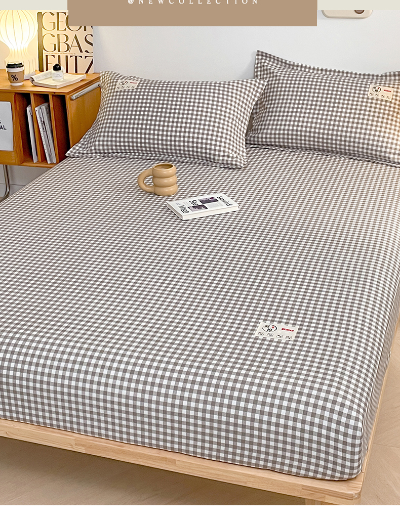 圣比熊 2025新款水洗棉麻单层床笠席梦思床垫保护套床单套加枕套-简约格子小格-灰