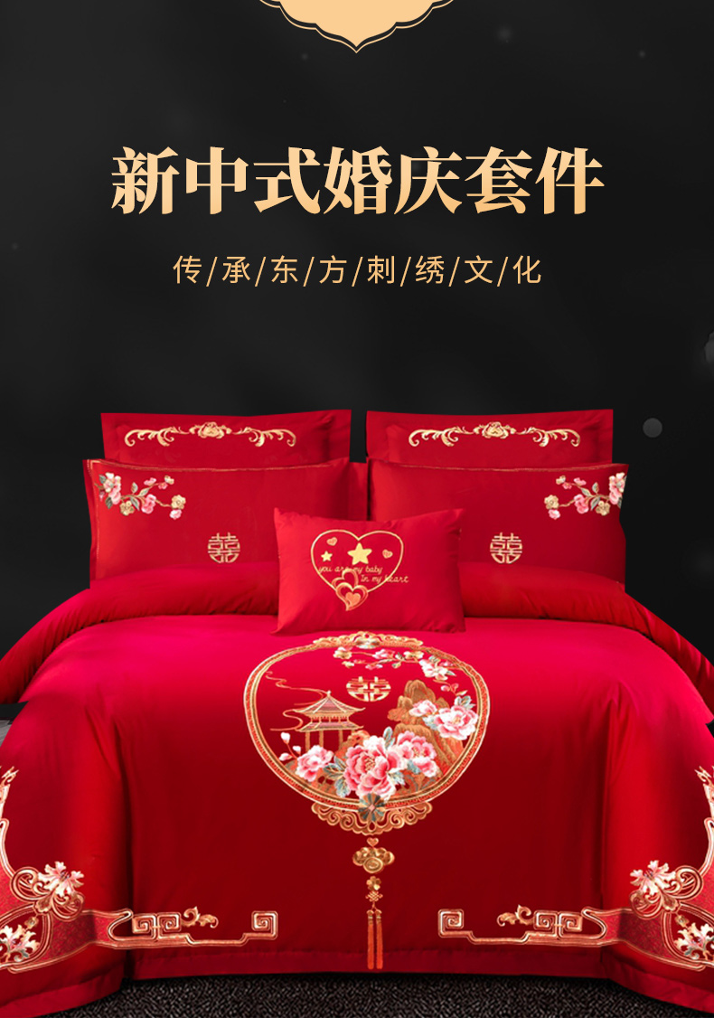 当前位置: 91家纺网 > 商品网购 > 床品套件 > 四件套 > 婚庆四件套 > 慕她家纺 2025新款磨毛婚庆四件套结婚刺绣花床品六喜庆 幸福满园