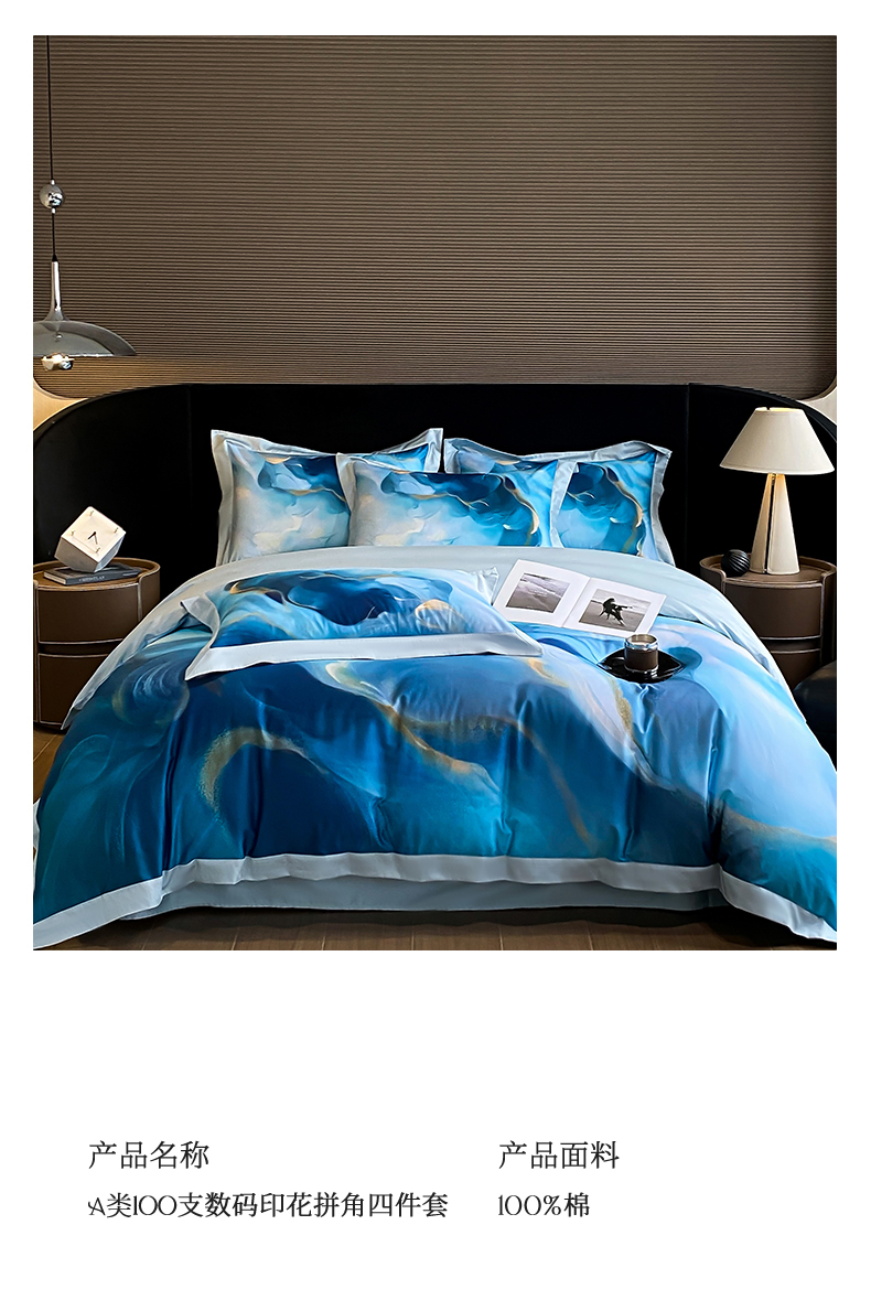 商品名称:蓝米卡夫 2024新品-A类100支高端数码拼角款-辉煌系列 聆风漫阁-蓝